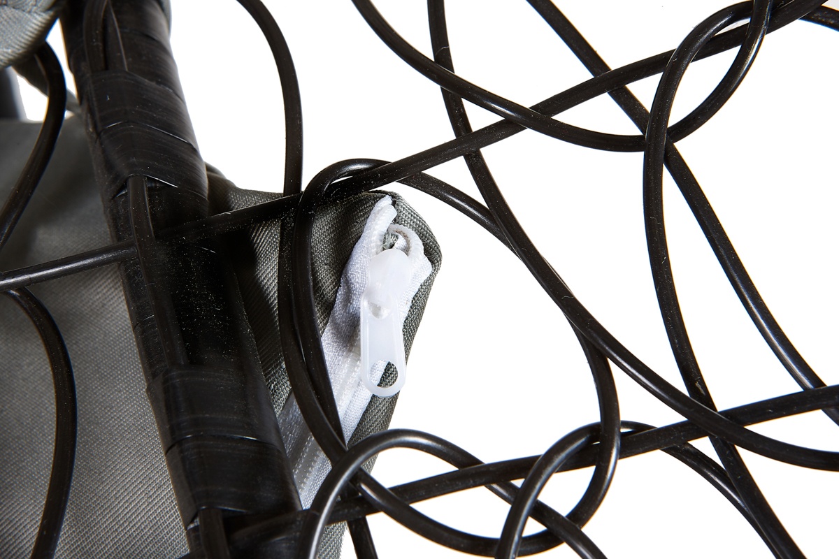 Viseća stolica sa stabilnom metalnom konstrukcijom i sjedećim prostorom ukrasno ispletenim od umjetnog ratana. Dio viseće stolice su i udobni jastuci koji su vodootporni.