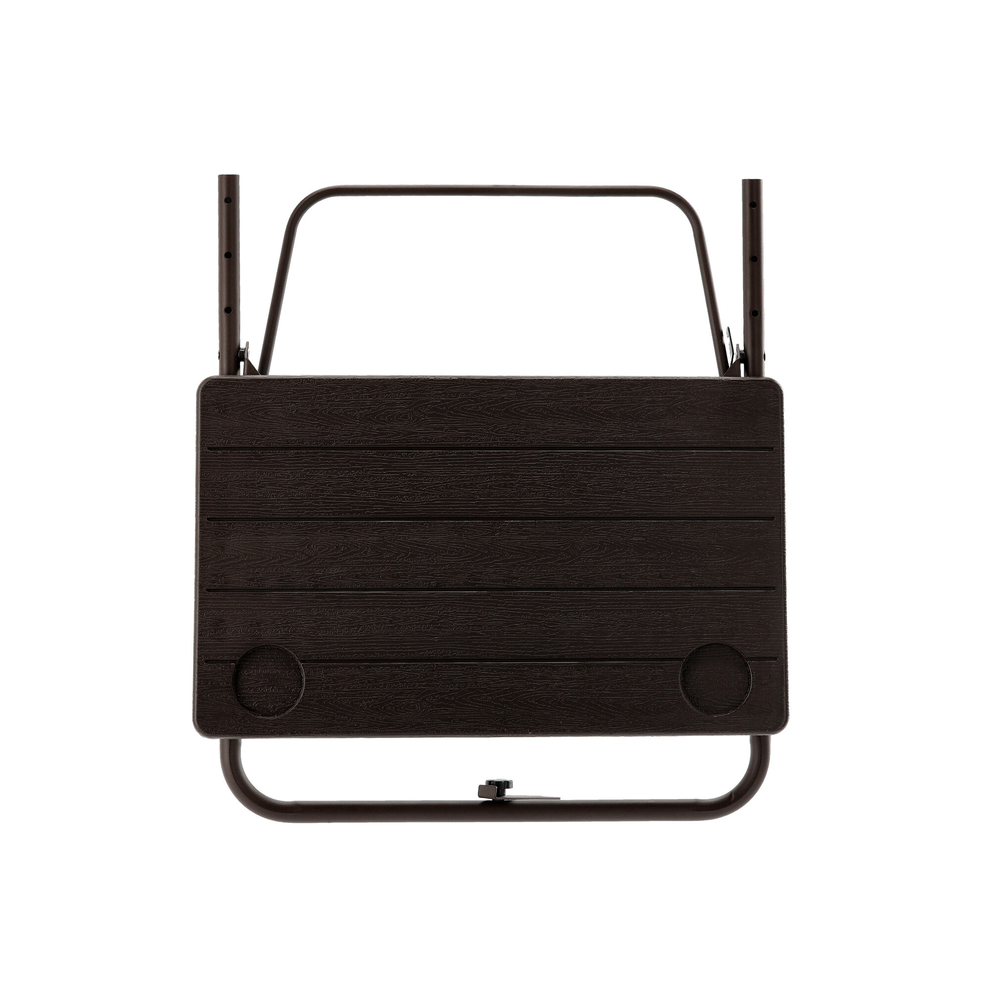 Sama površina stola, s podesivom visinom od 73/78,5 ili 83,5 cm, opremljena je s dva držača za piće.Prednost ovog stola je njegova izvanredna kompaktibilnost i jednostavna montaža.