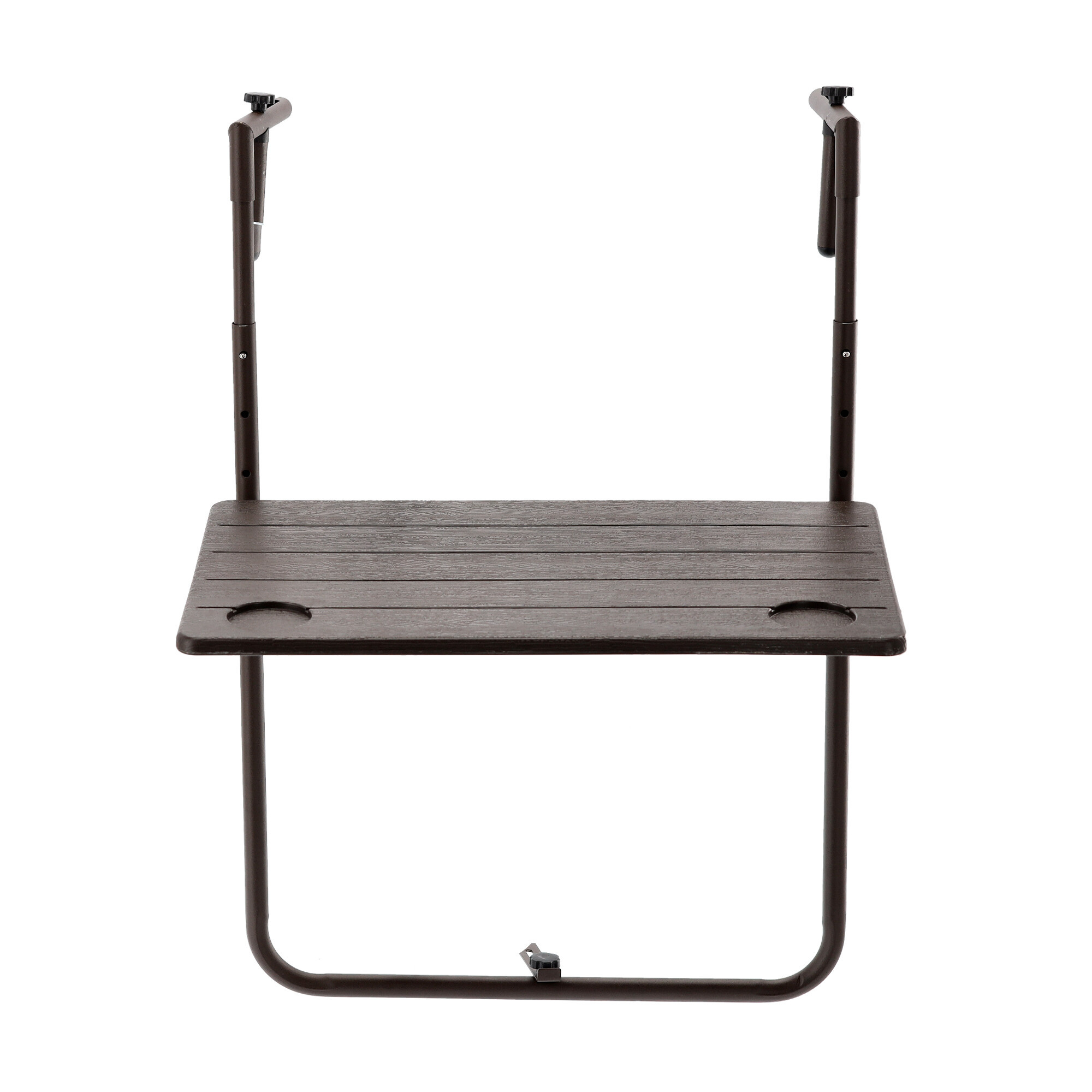 Stol je izrađen od izdržljivog materijala koji je dizajniran da izdrži i teške uvjete vanjskog okruženja. Smeđa boja koja imitira prirodno drvo daje stolu elegantan izgled koji se savršeno uklapa s okolinom vašeg balkona.