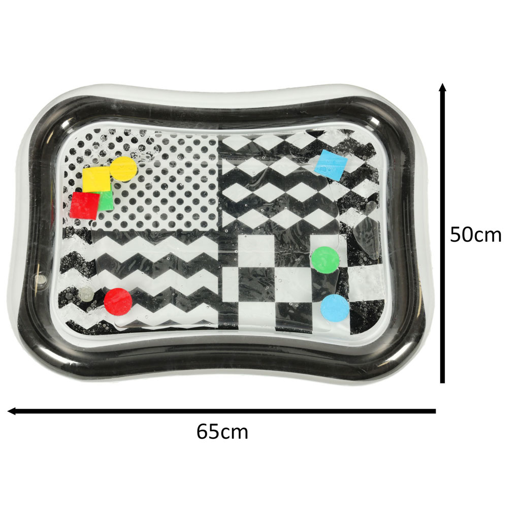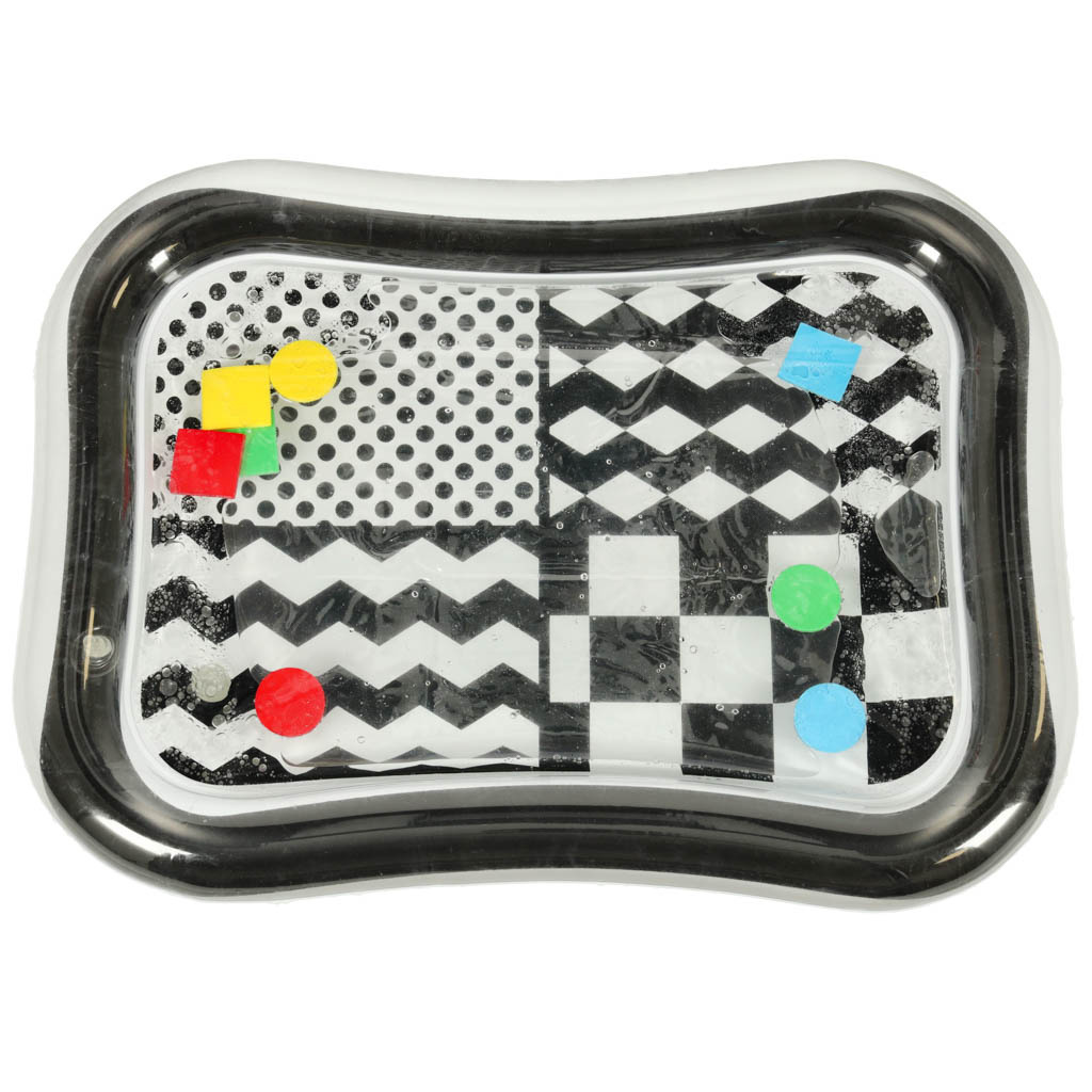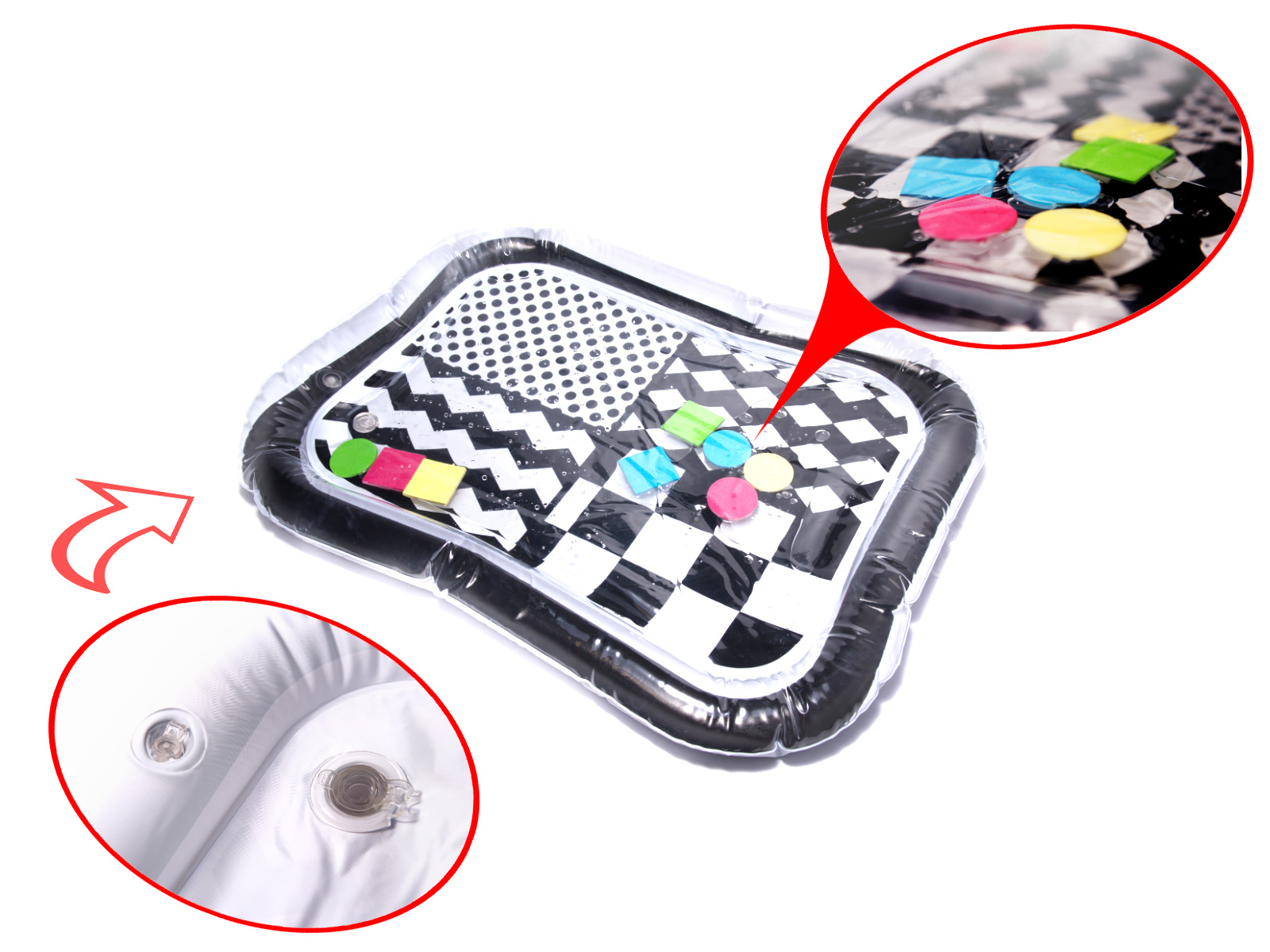 Nevjerojatna senzorna podloga za djecu s kontrastnim crno-bijelim uzorkom. Unutar podloge nalaze se šareni geometrijski oblici koji se pomiču kada se dijete kreće. Plutajući elementi privući će djetetovu pažnju i zadržati njegov interes. Rub podloge trebao bi biti napuhan zrakom, dok je središte ispunjeno vodom. Za postizanje boljih rezultata, središte se može napuniti djelomično vodom i djelomično zrakom.
