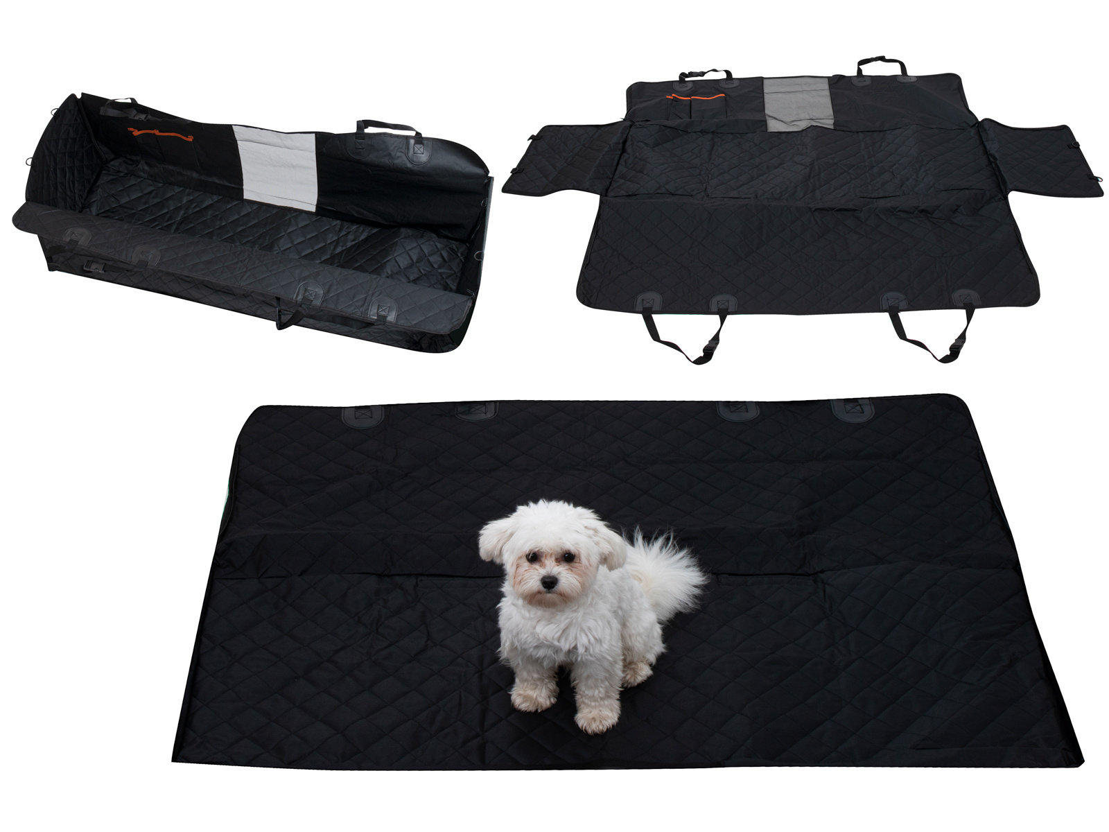 Velika vodootporna podloga za automobil za kućne ljubimce. Zahvaljujući bravama, može se pretvoriti u praktičnu ogradu. Drži vašeg kućnog ljubimca na sigurnom i štiti presvlake od prljanja. Sadrži praktične džepove. Jednostavna montaža.Dimenzije podloge: 136x120 cm.Cijeli opis