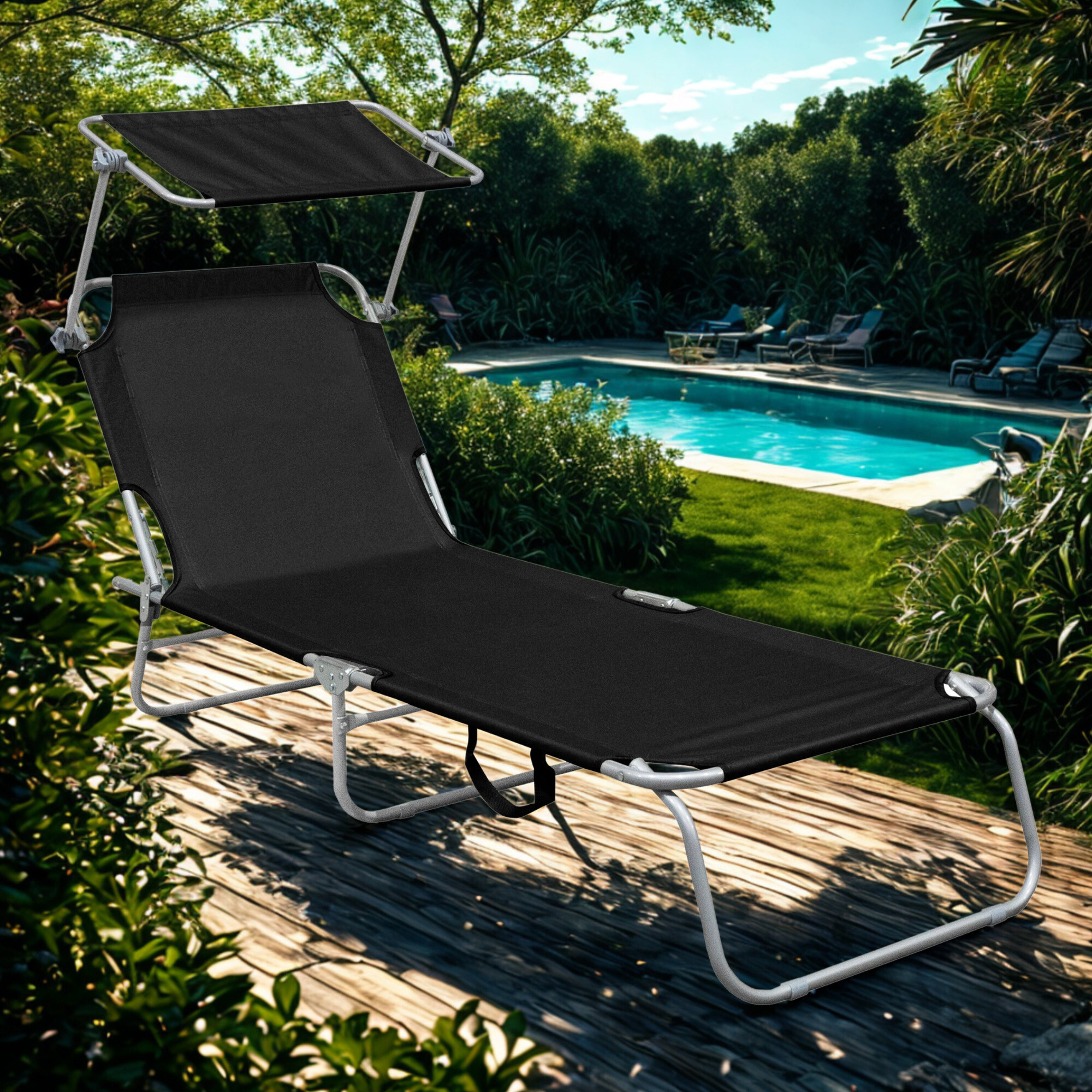 Dio ležaljke je odvojivi krović koji se može slobodno podesiti i zaštititi lice od jakog sunca.Naslon za ležaljku može se podesiti u 4 različita položaja.