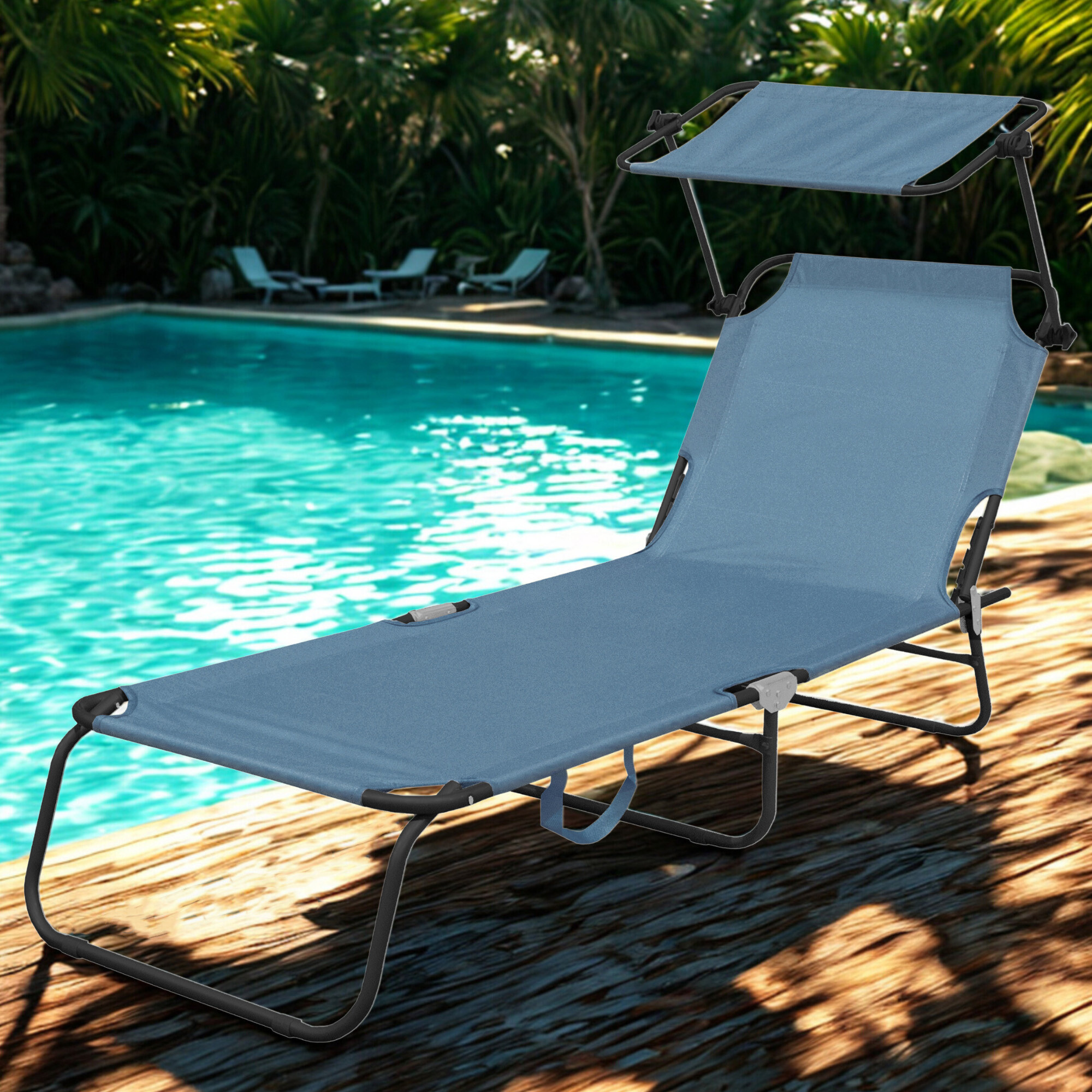 Dio ležaljke je odvojivi krović koji se može slobodno podesiti i zaštititi lice od jakog sunca.Naslon za ležaljku može se podesiti u 4 različita položaja.