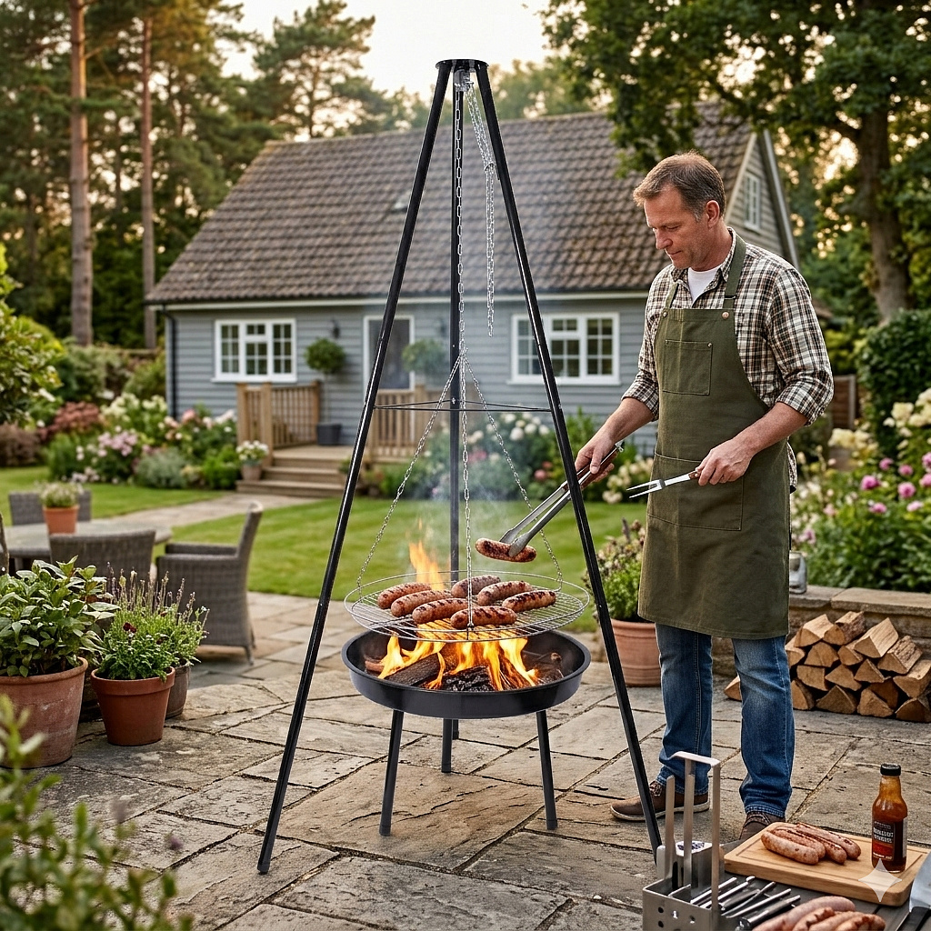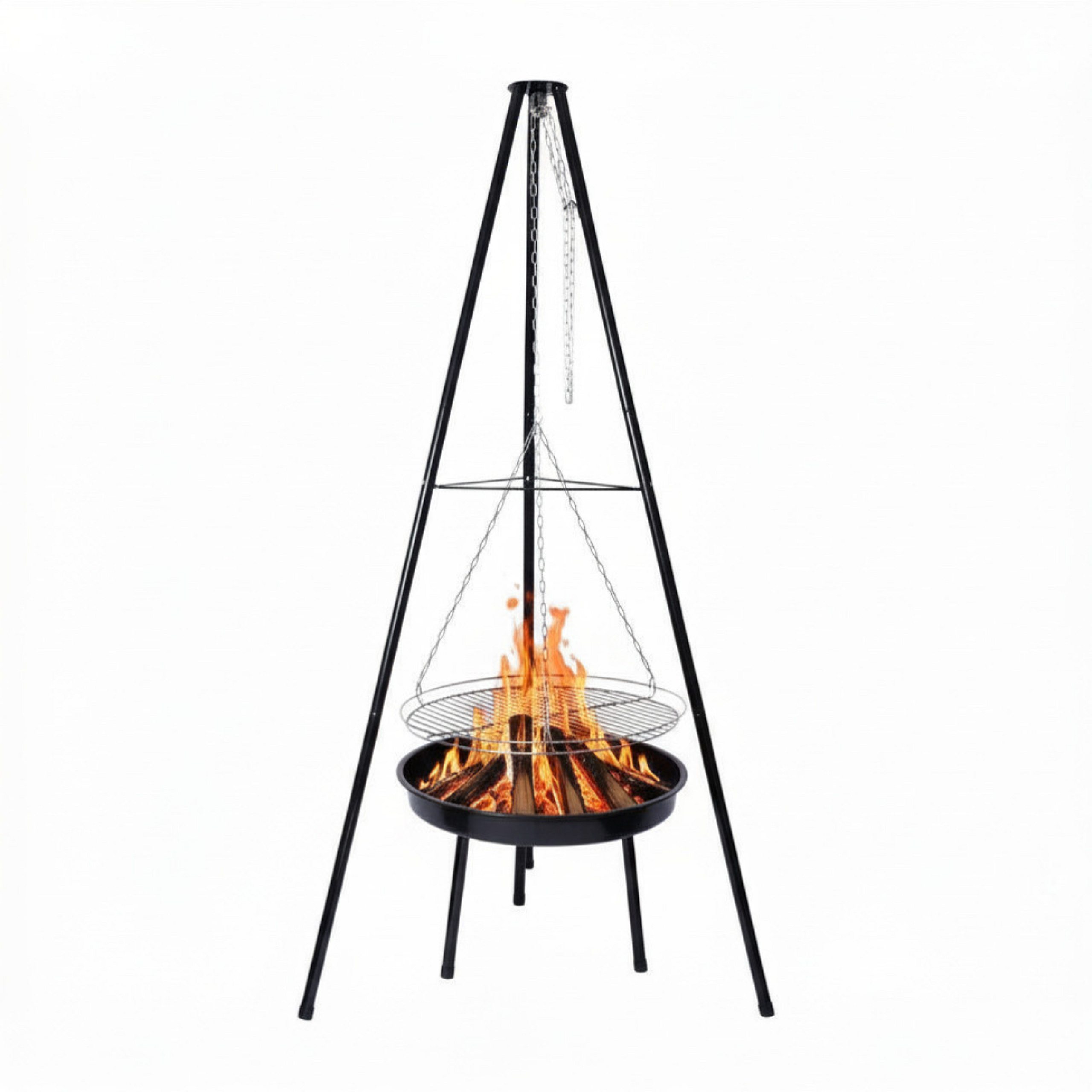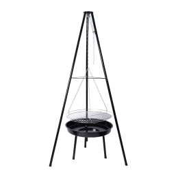 Ako volite kampiranje i kuhanje u klasičnom kotliću, dobro će vam doći ovaj tronožac, uz pomoć kojeg možete objesiti rešetku ili kotlić iznad ognjišta. Za vješanje služi kuka na lancu. Zahvaljujući korištenom materijalu, tronožac ima vrlo dug vijek trajanja.