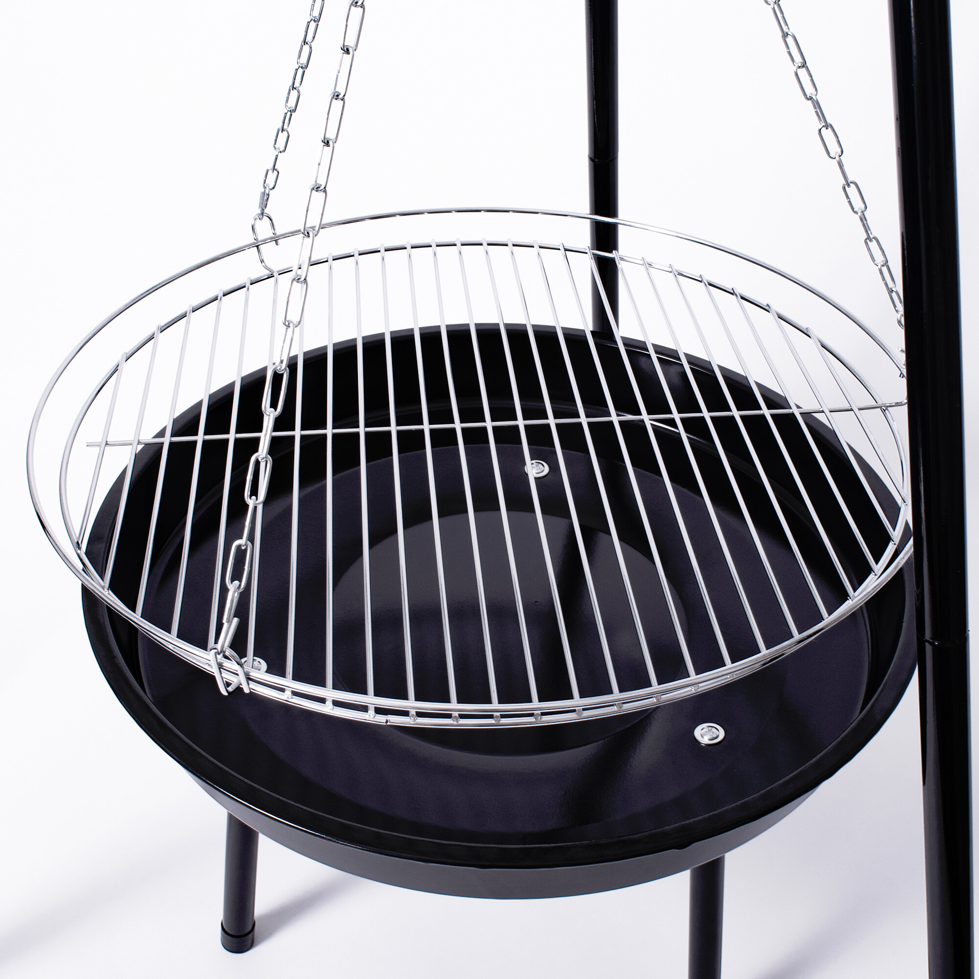 Visinu rešetke za roštilj lako je podesiti pomoću koloture smještene na vrhu tronošca i kukica.