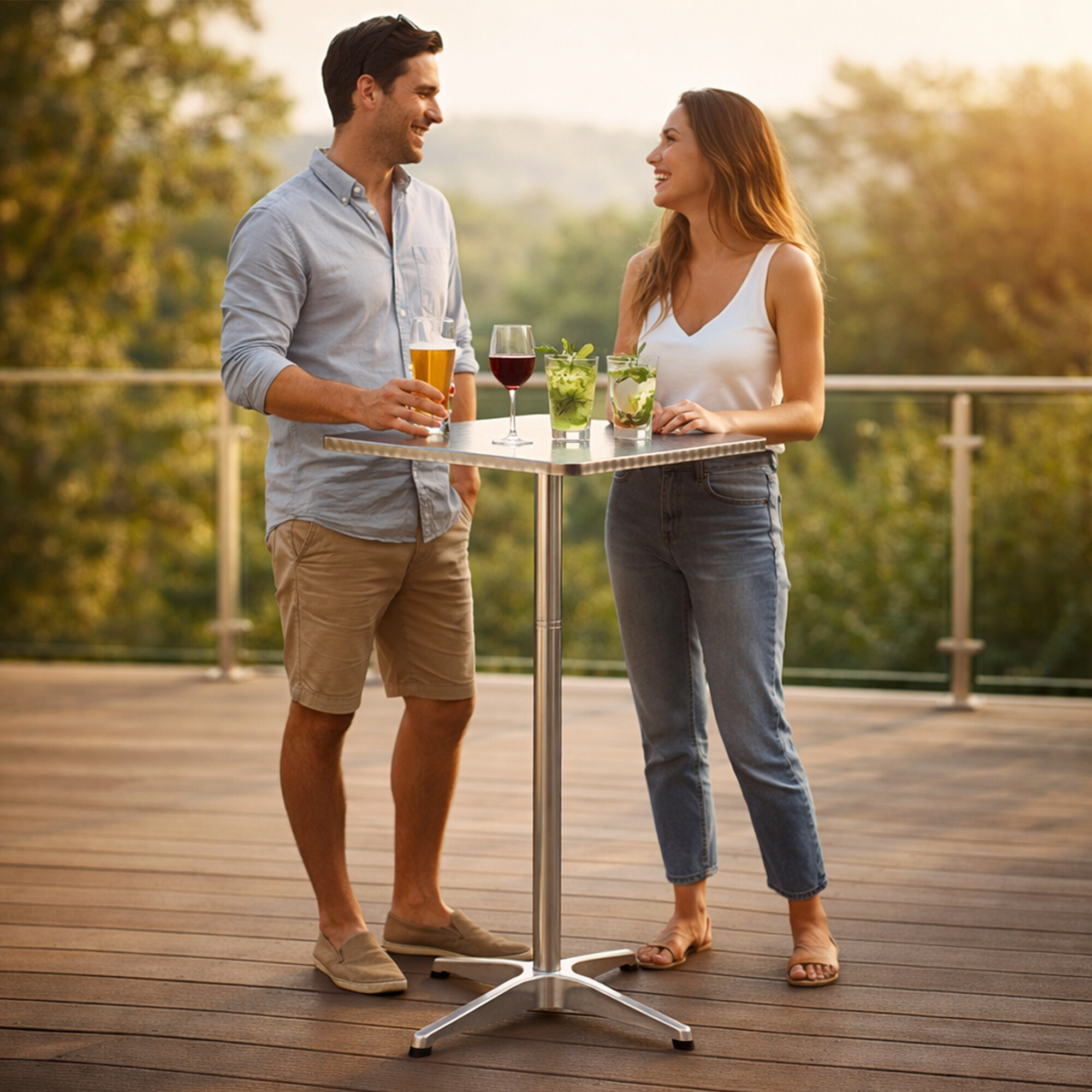 Vrtni stol BISTRO s čvrstim aluminijskim okvirom i nehrđajućom pločom u modernom dizajnu, prikladan za vrtove, terase, kafiće, sjenice, balkone ili plaže.