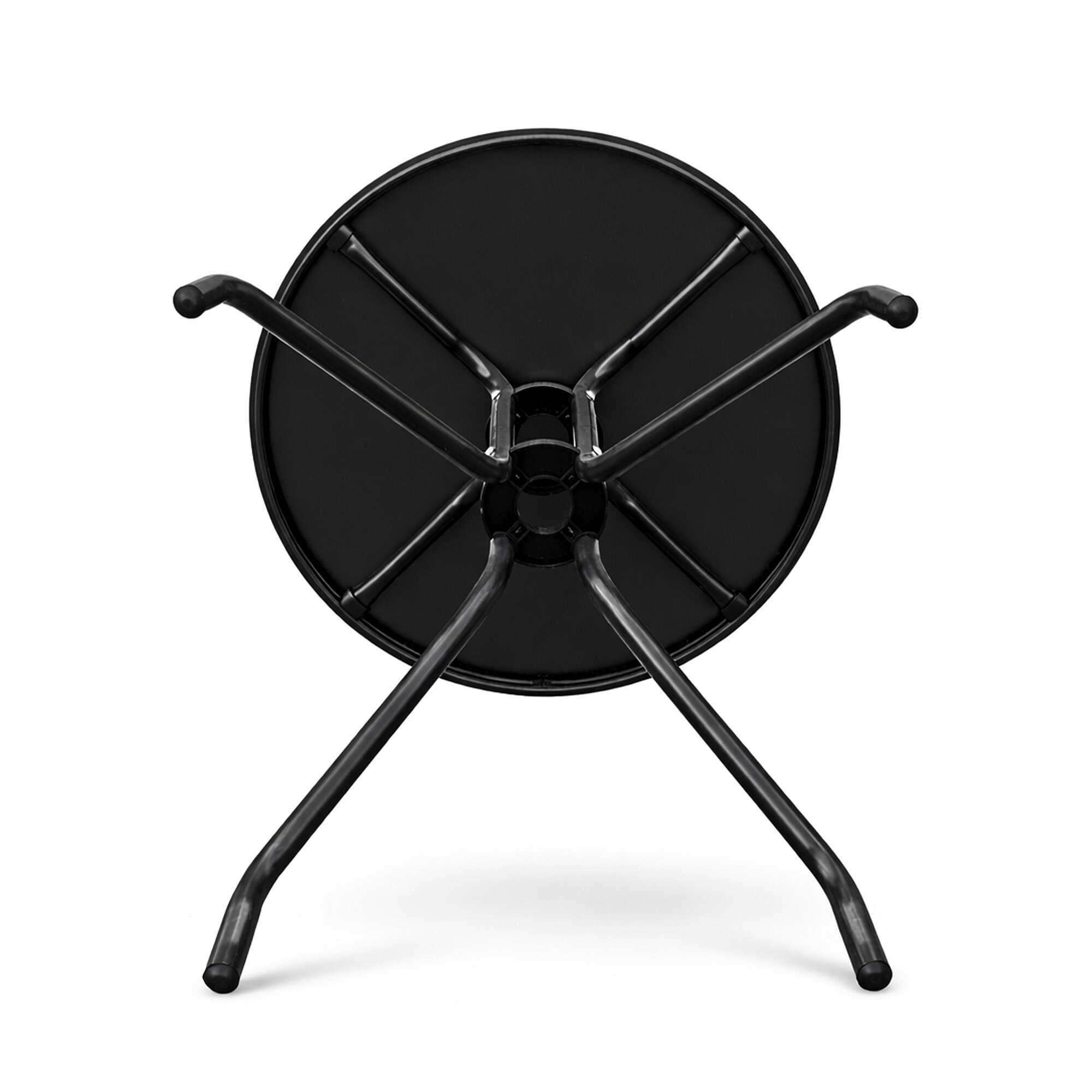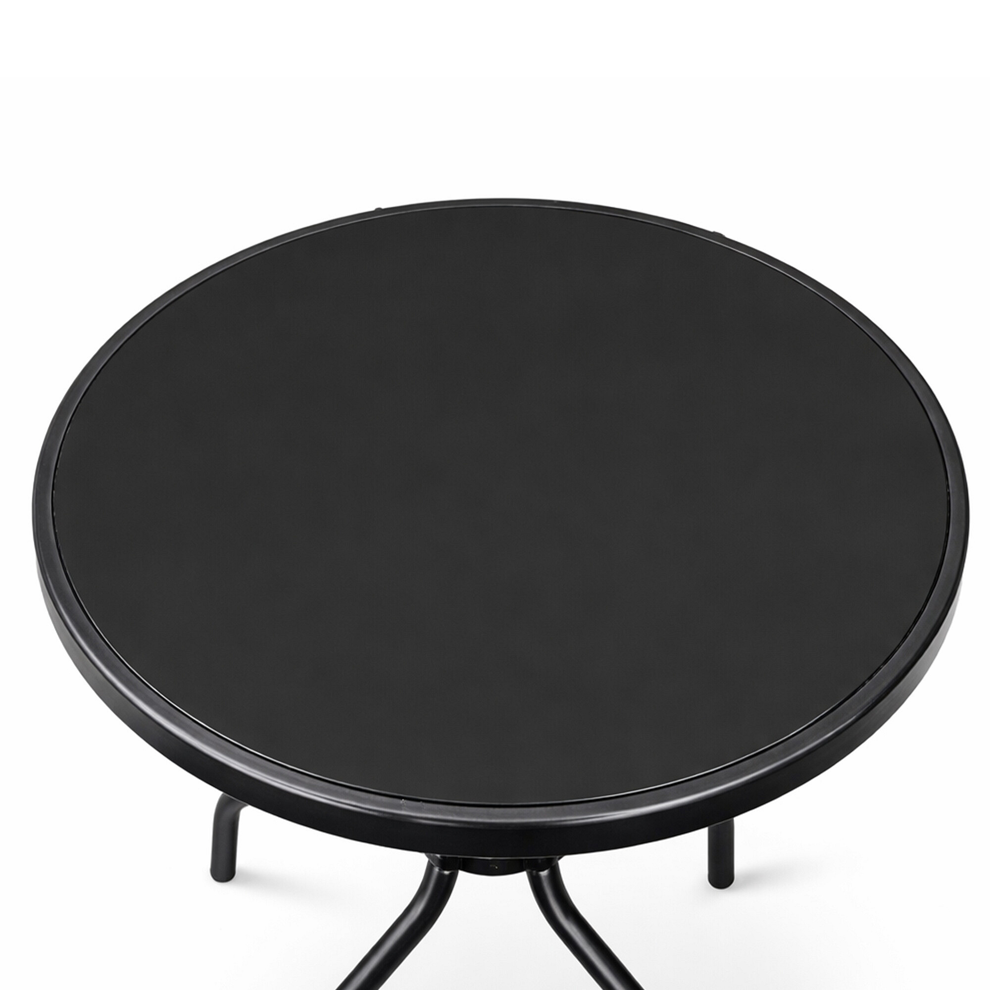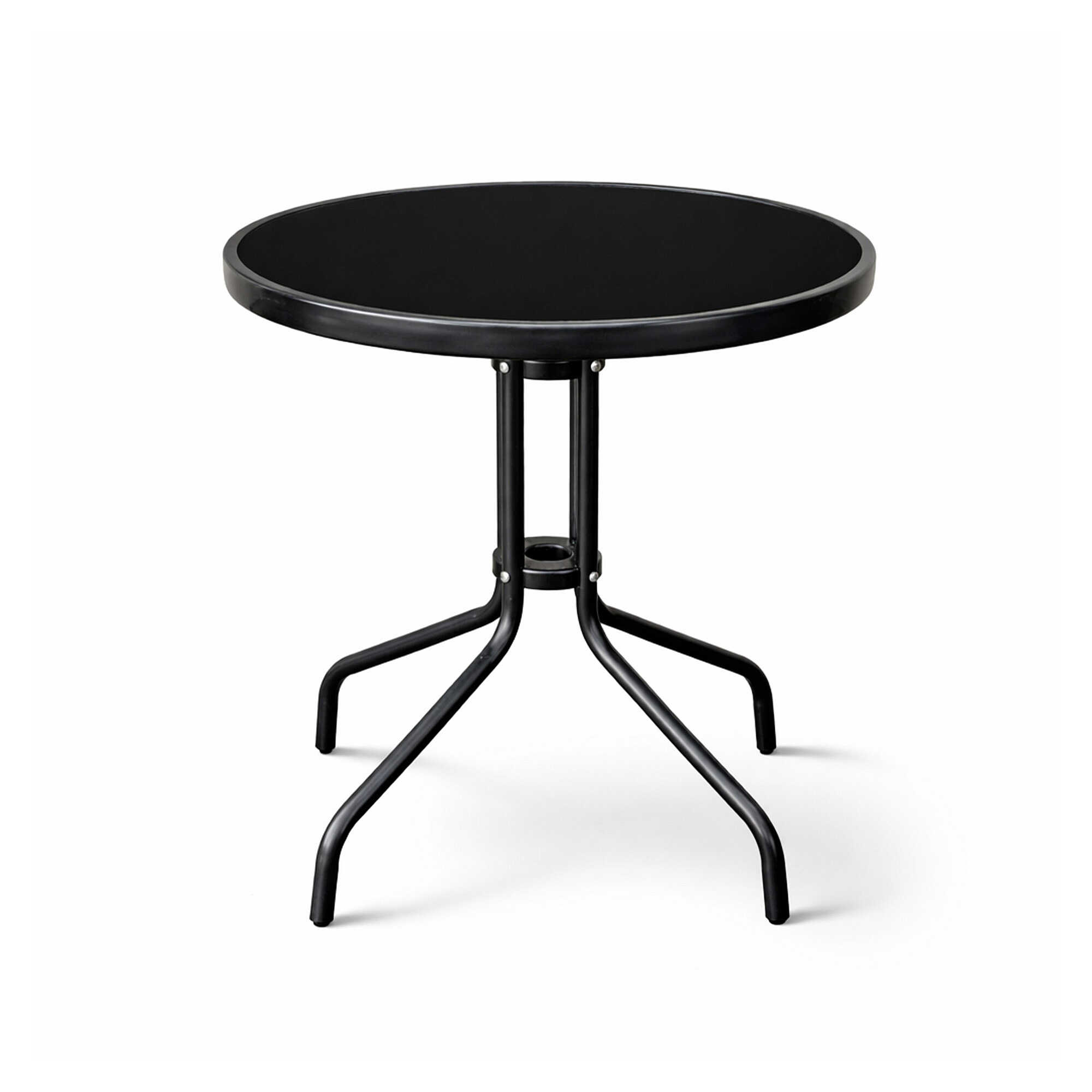 Okrugli vrtni stol s čvrstim metalnim okvirom i staklenom pločom, pogodan za vrtove, terase, kafiće, sjenice, balkone.