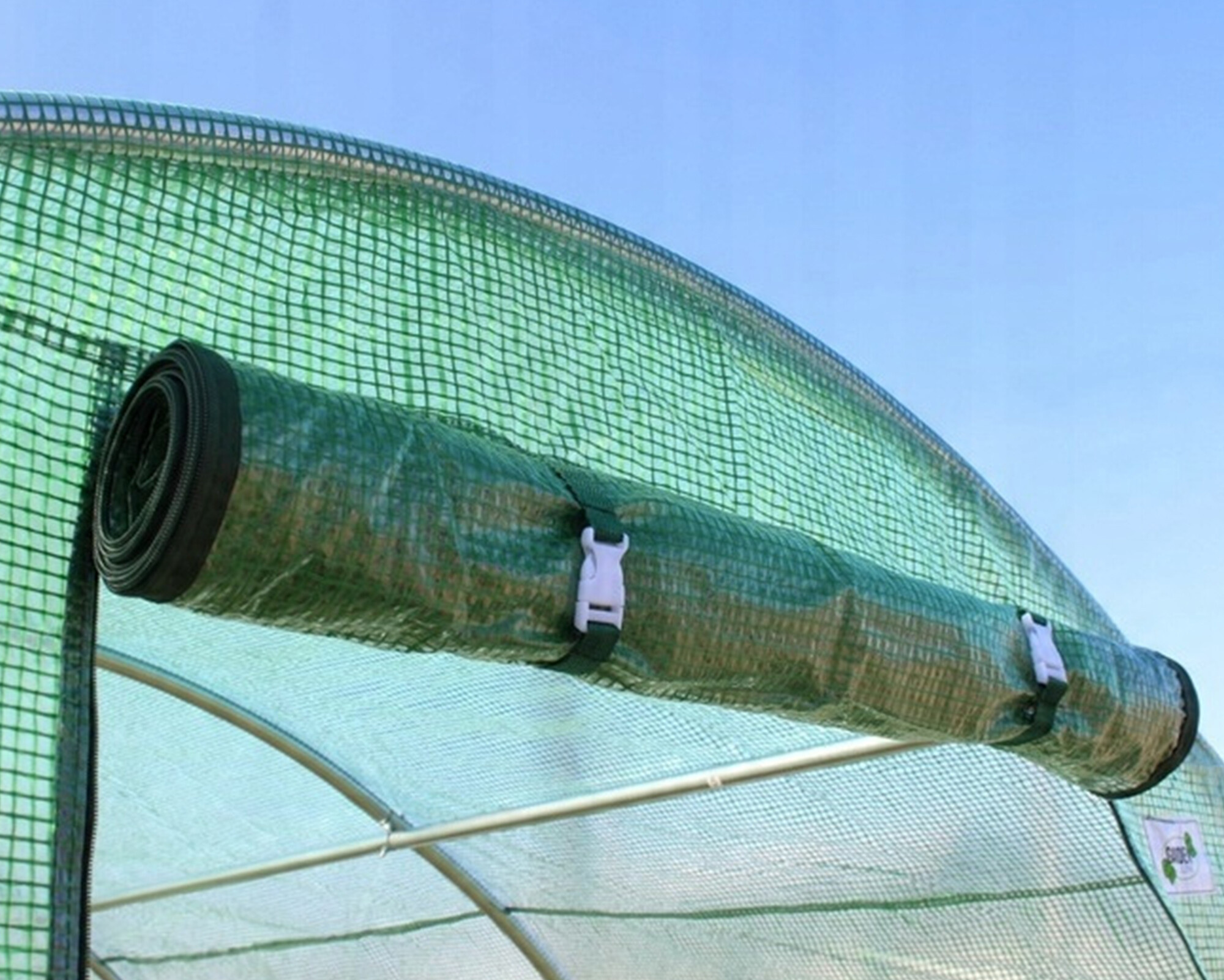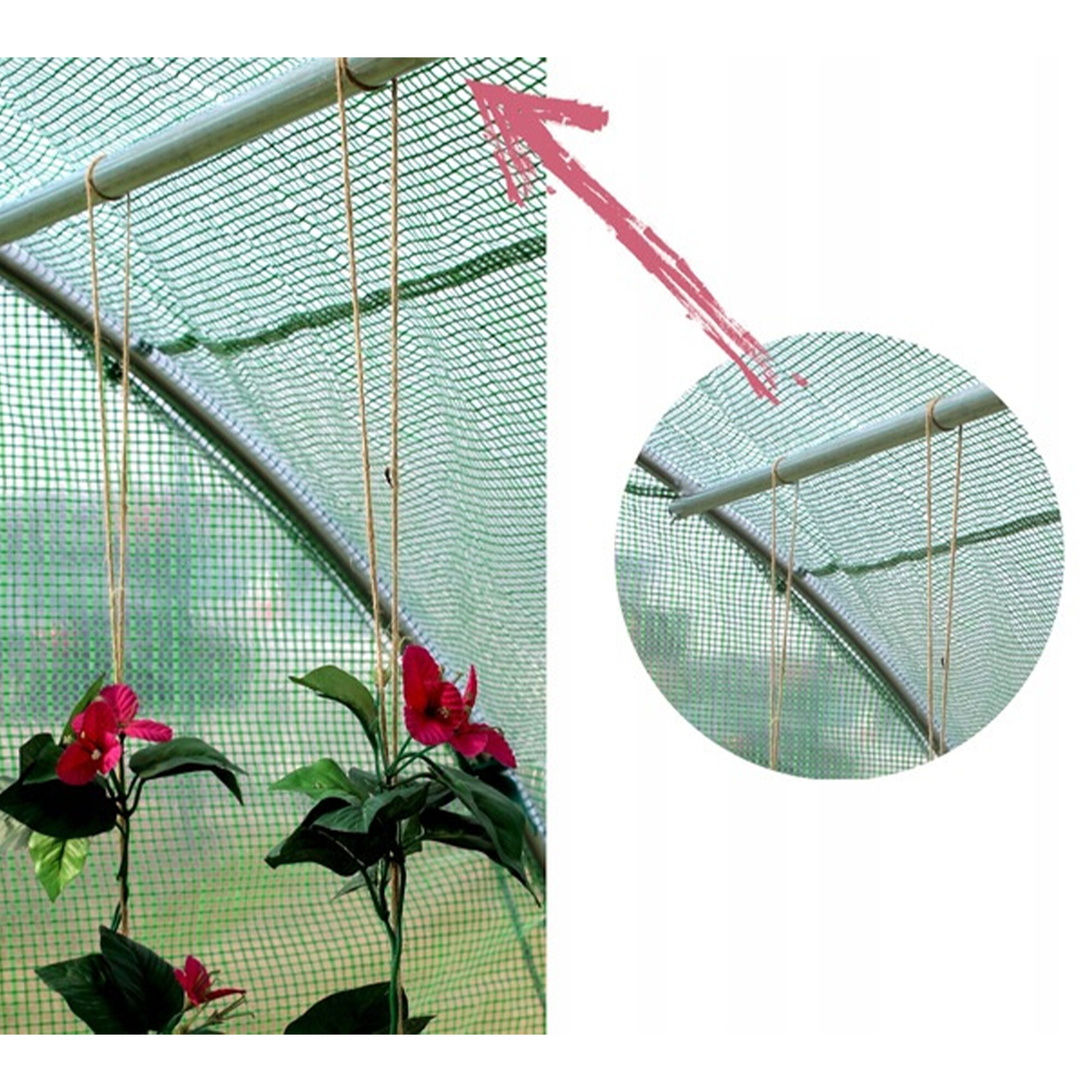 Prozirni sloj PE folije pruža izvanredna svojstva termoregulacije i maksimalnu propusnost svjetla.Zelena mrežica od PP ugrađena u strukturu folije je ojačava i štiti od kidanja i mehaničkih oštećenja.