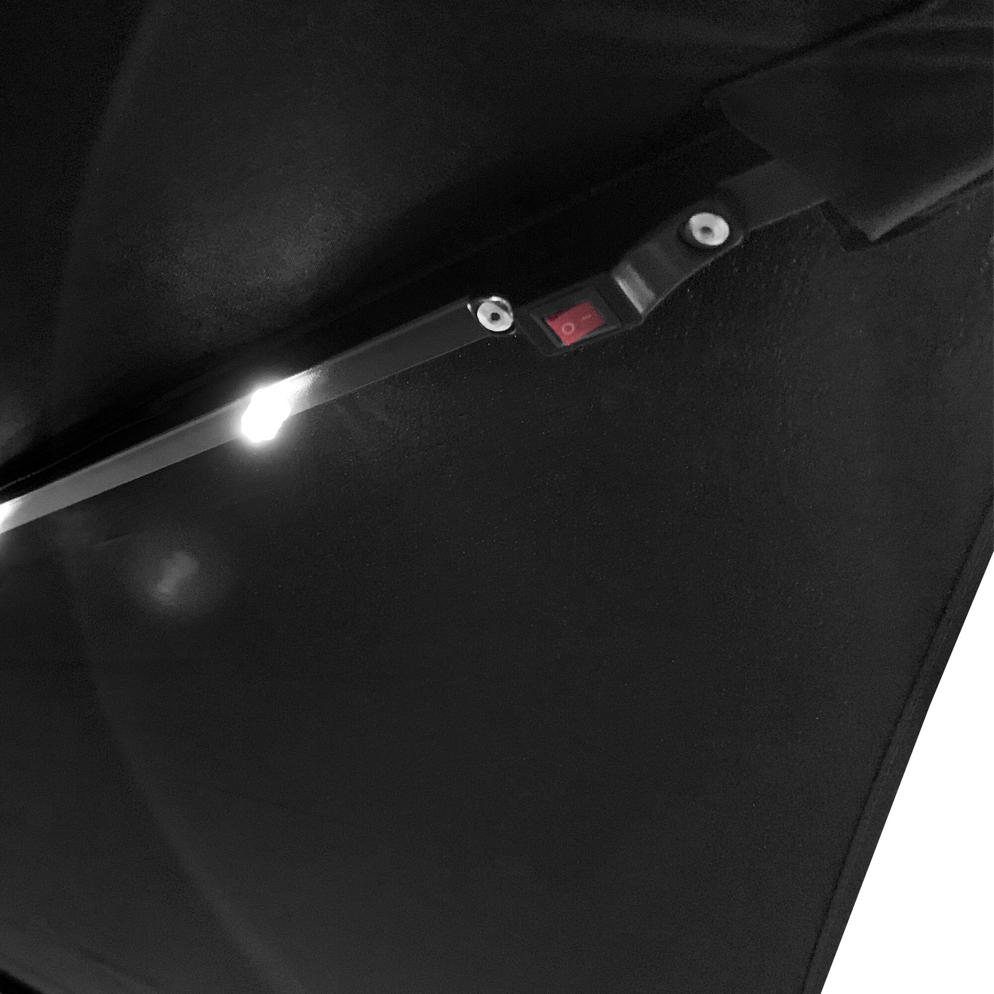 Suncobran ima 24 LED dioda duž rebara, koje su napajane iz solarnog panela smještenog na kišobranu. LED rasvjeta stvorit će ugodnu atmosferu u vašem vrtu tijekom večernjeg sjedenja.