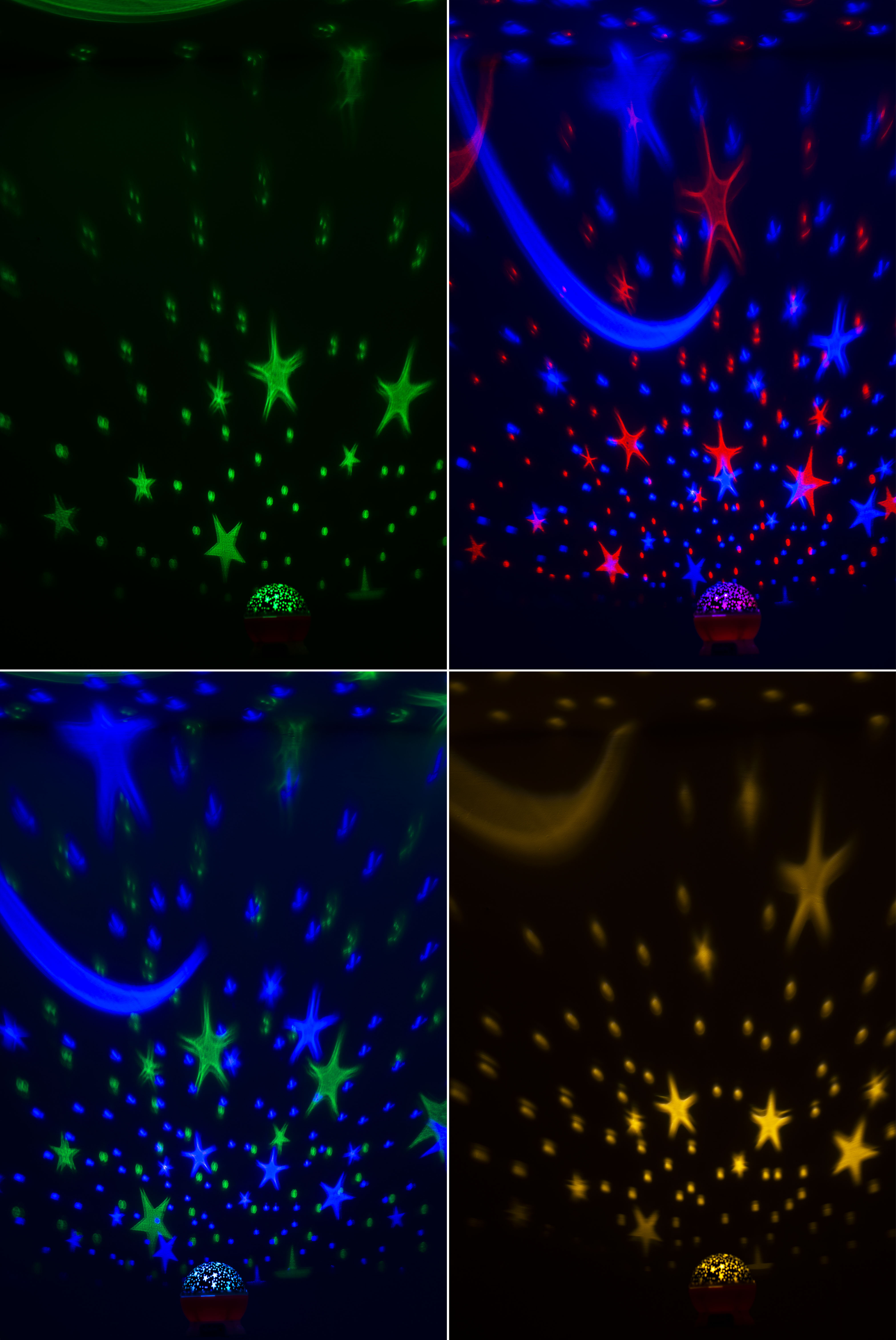 Lampa prikazuje projekcije zvjezdanog neba u različitim bojama i načinima, kao što je glatka promjena boja ili isključivanje pojedinih boja.