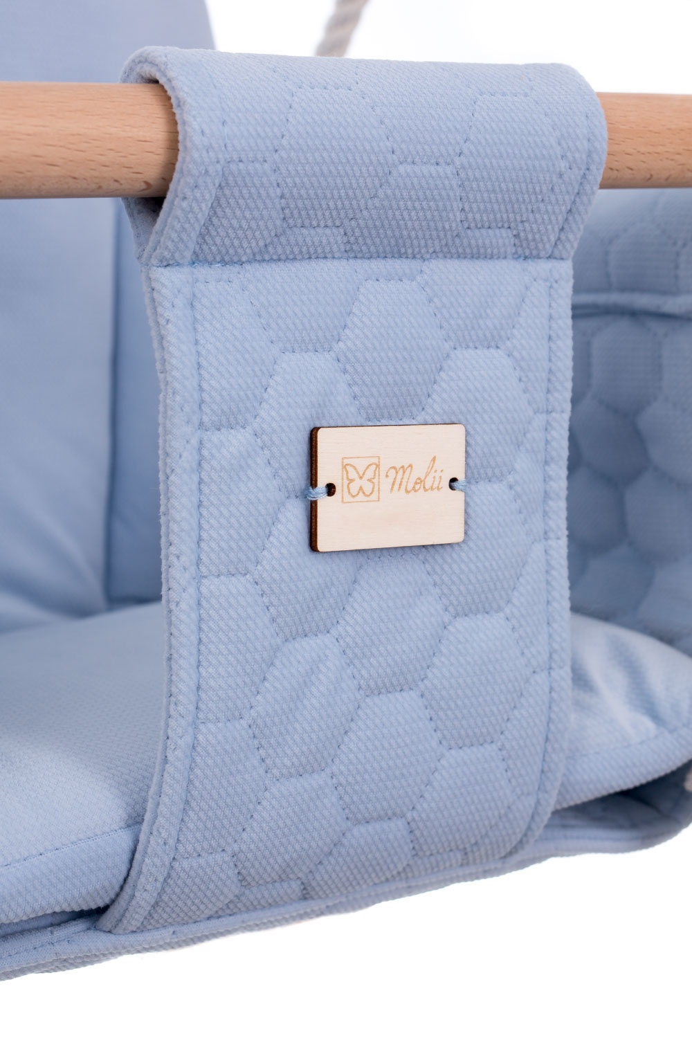 Ako je tkanina prljava, obrišite je mekom krpom. Bukovo drvo, koje čini okvir, jamči visoki standard proizvoda. Ljuljačka je opremljena robusnim pamučnim užadima koji podnose opterećenje do 20 kg.