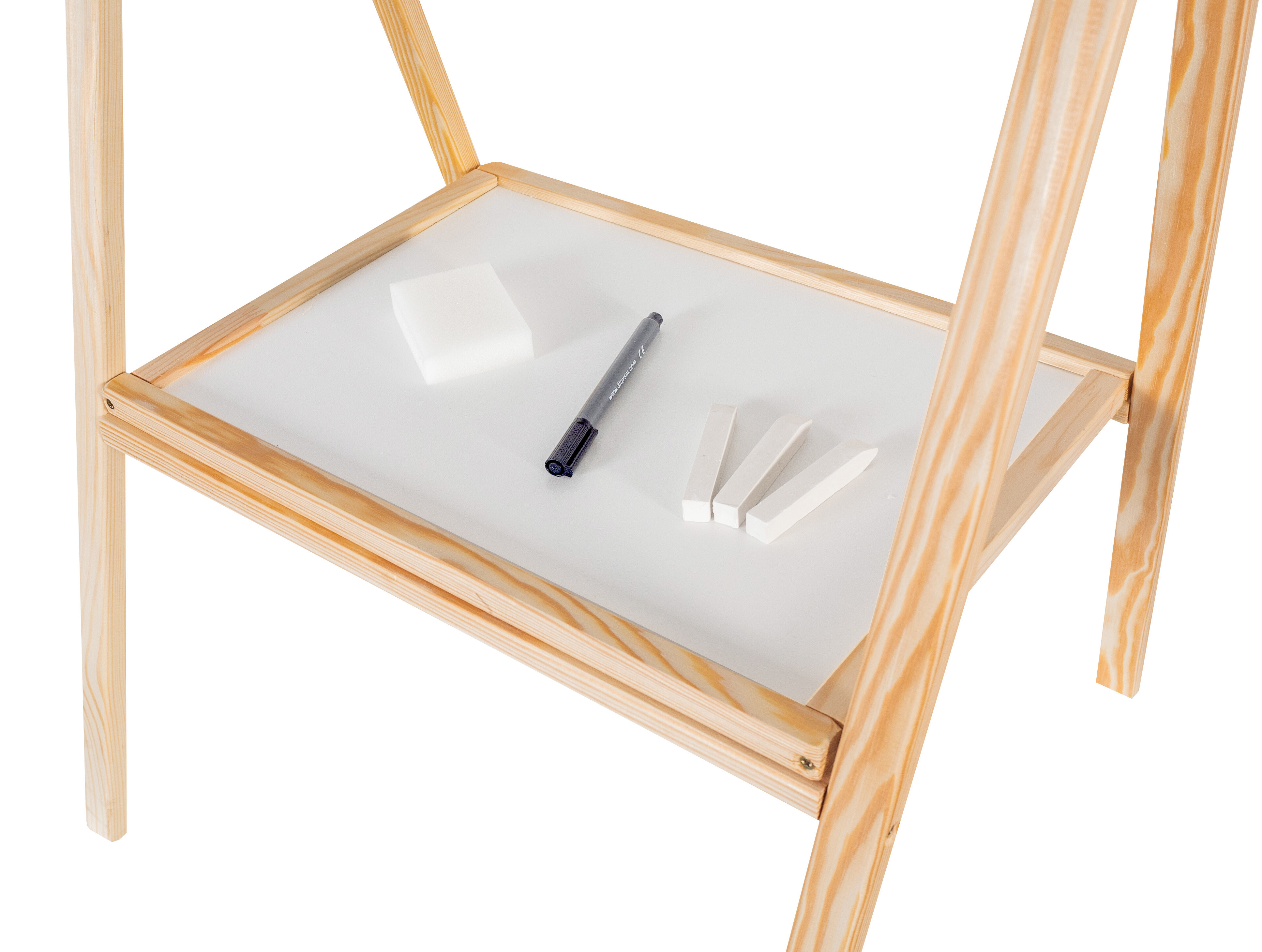 Na crnoj strani ploče djeca mogu crtati klasičnim kredama, a na drugoj, bijeloj, zatim šarenim markerima.