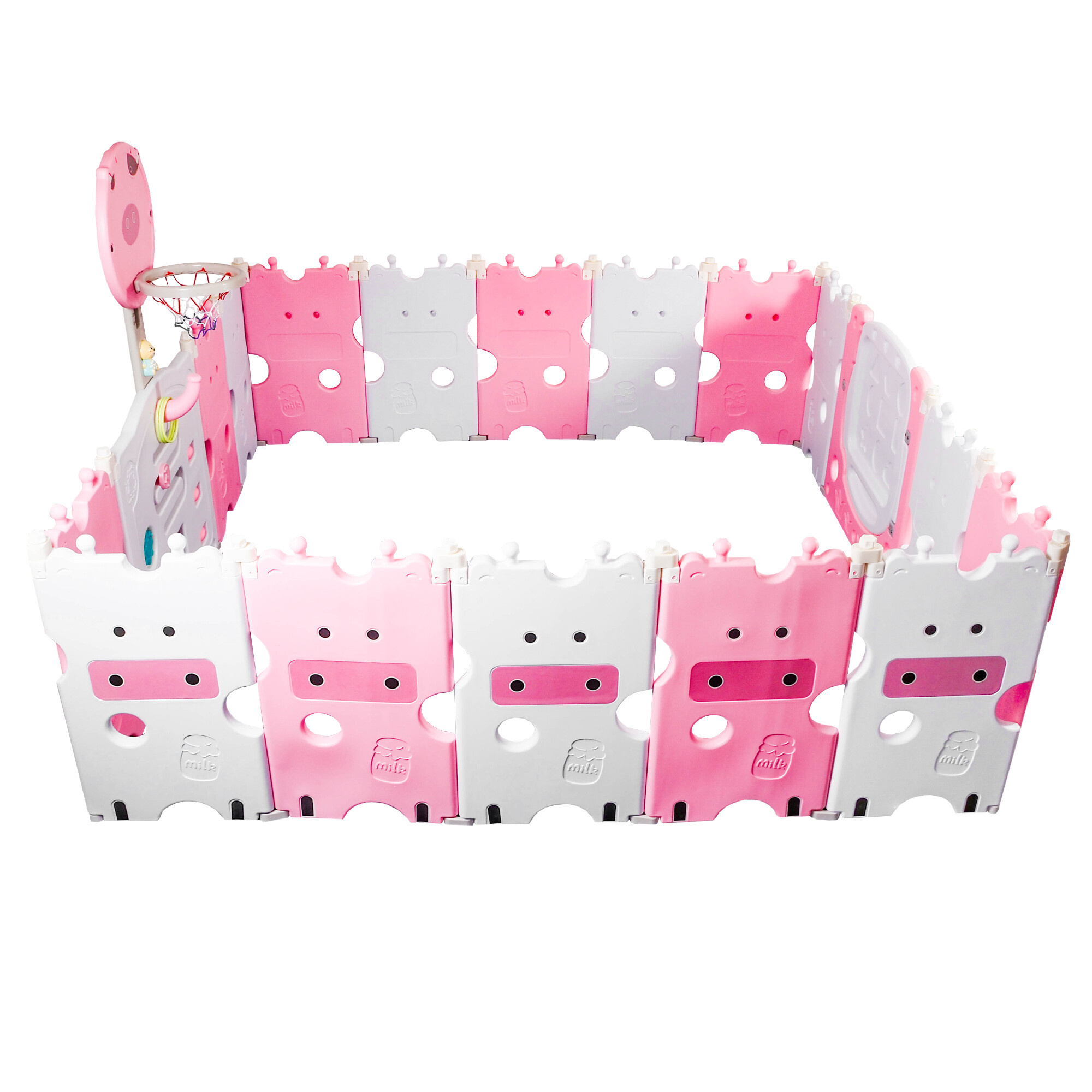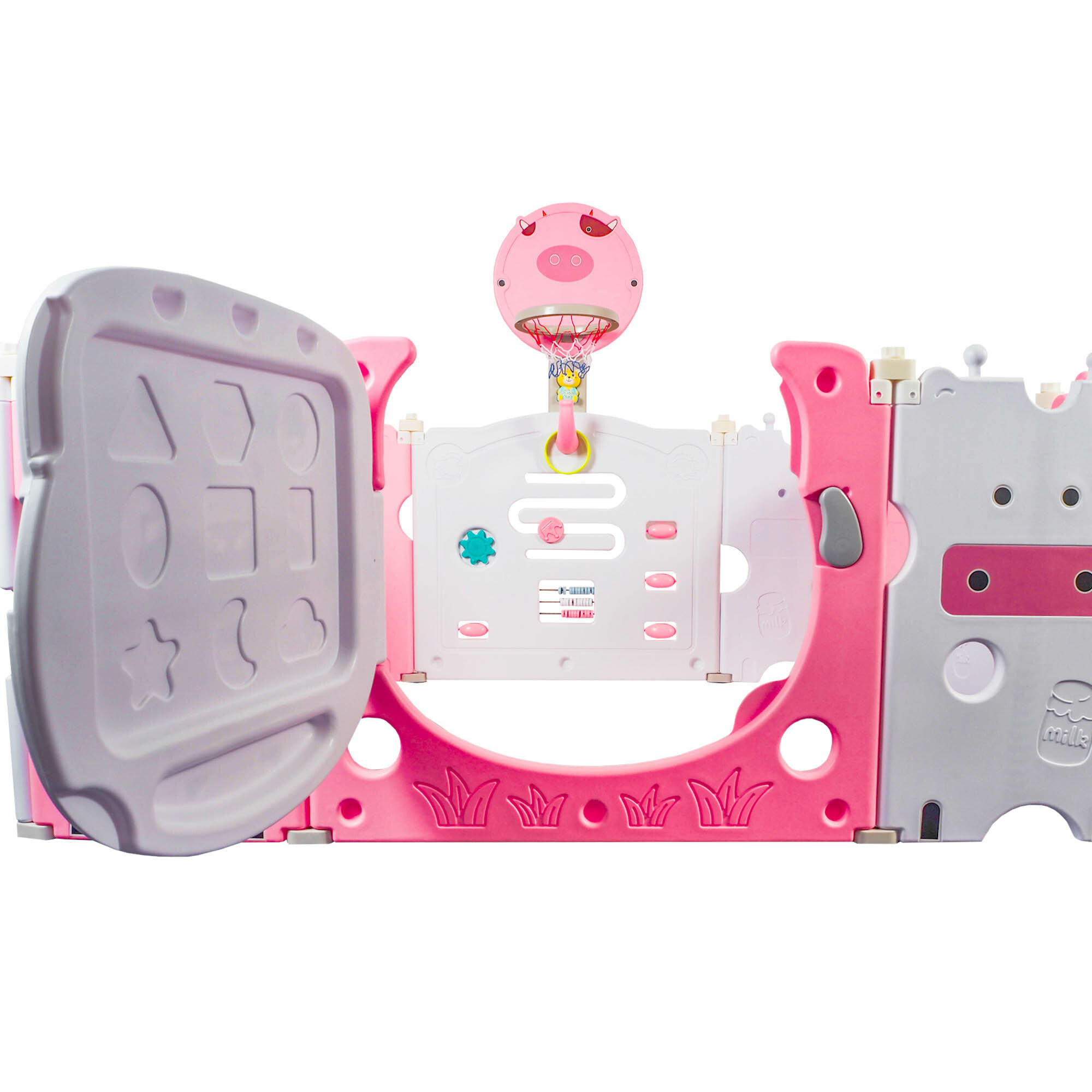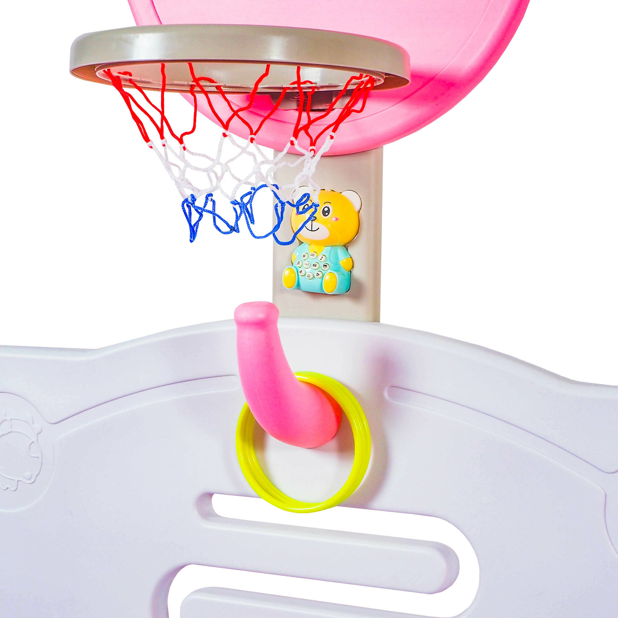 Plastična ograda nije samo obično mjesto za igru. Opremljena je košem za košarku i loptom, što djeci omogućuje razvijanje motoričkih vještina i koordinacije. Osim toga, dio ogradice je interaktivni medvjedić sa zvučnim efektima koji će zabaviti djecu i potaknuti njihov osjetilni razvoj. Medvjedić ispušta razne zvukove koji potiču dječju znatiželju i podržavaju njihov kognitivni razvoj.