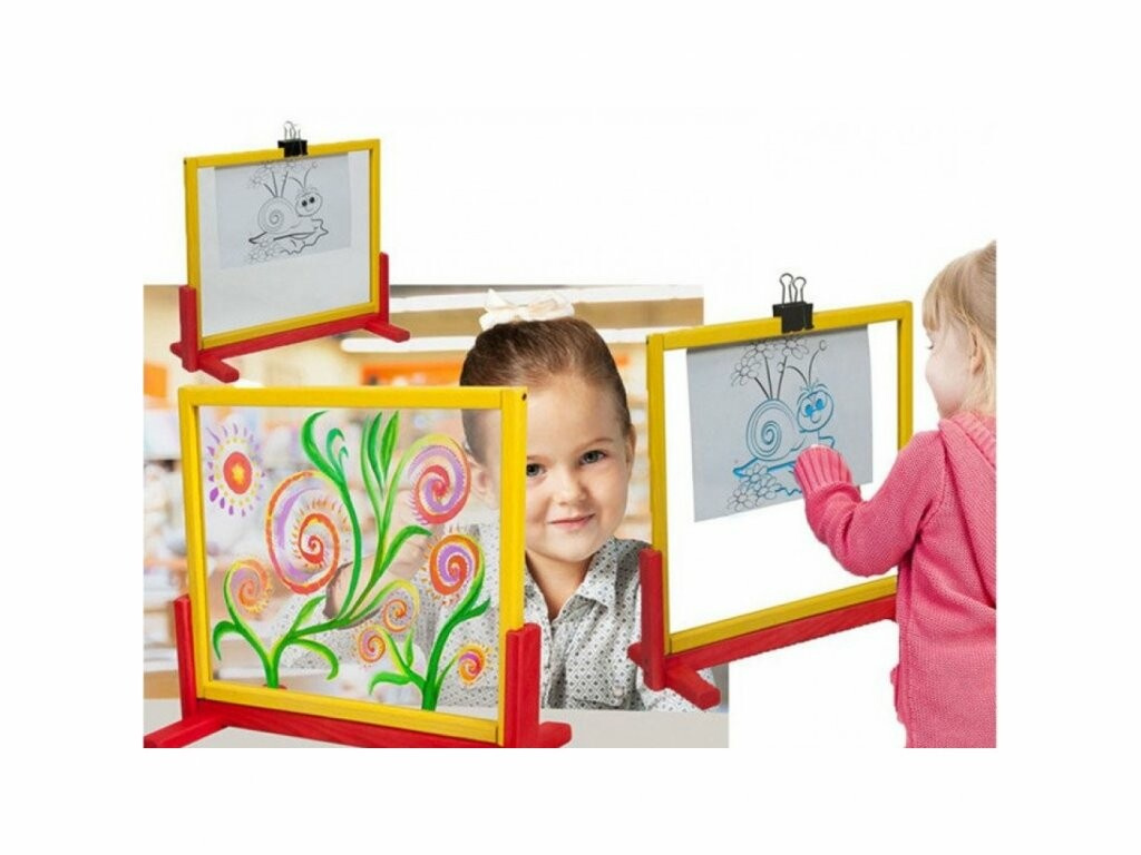 Dječja magnetska kreativna ploča od prozirnog sigurnosnog stakla (pleksiglas), na koju se mogu slikati bojama i flomasterima razni uzorci i crteži.