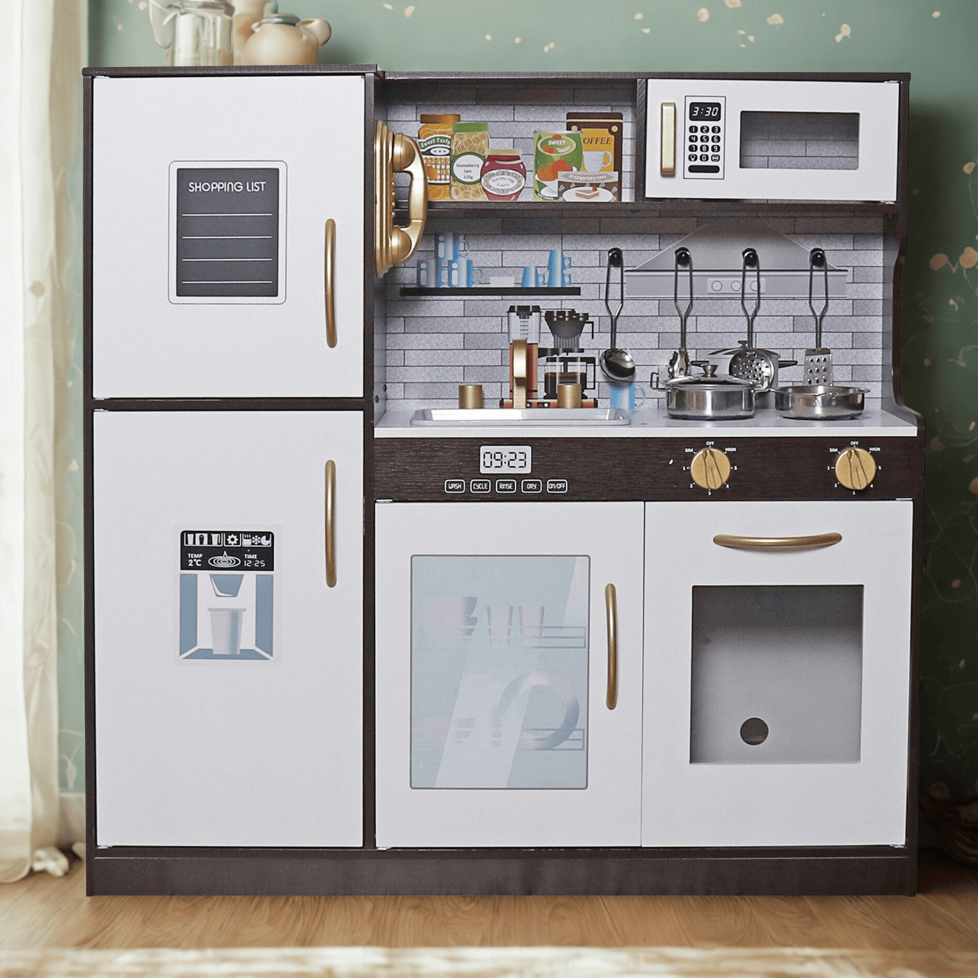 Ovaj model dječje kuhinje opremljen je s nizom funkcionalnih elemenata i dodataka. Kuhinjska igračka je dovoljno velika da se s njom može igrati više djece istovremeno.