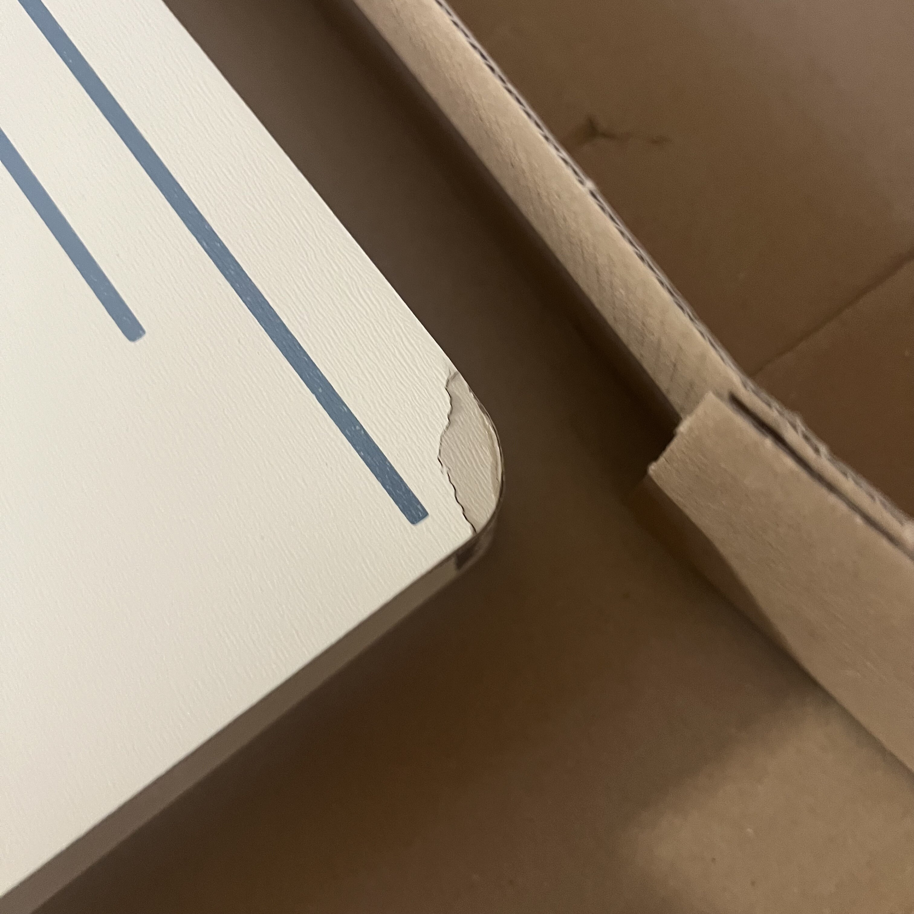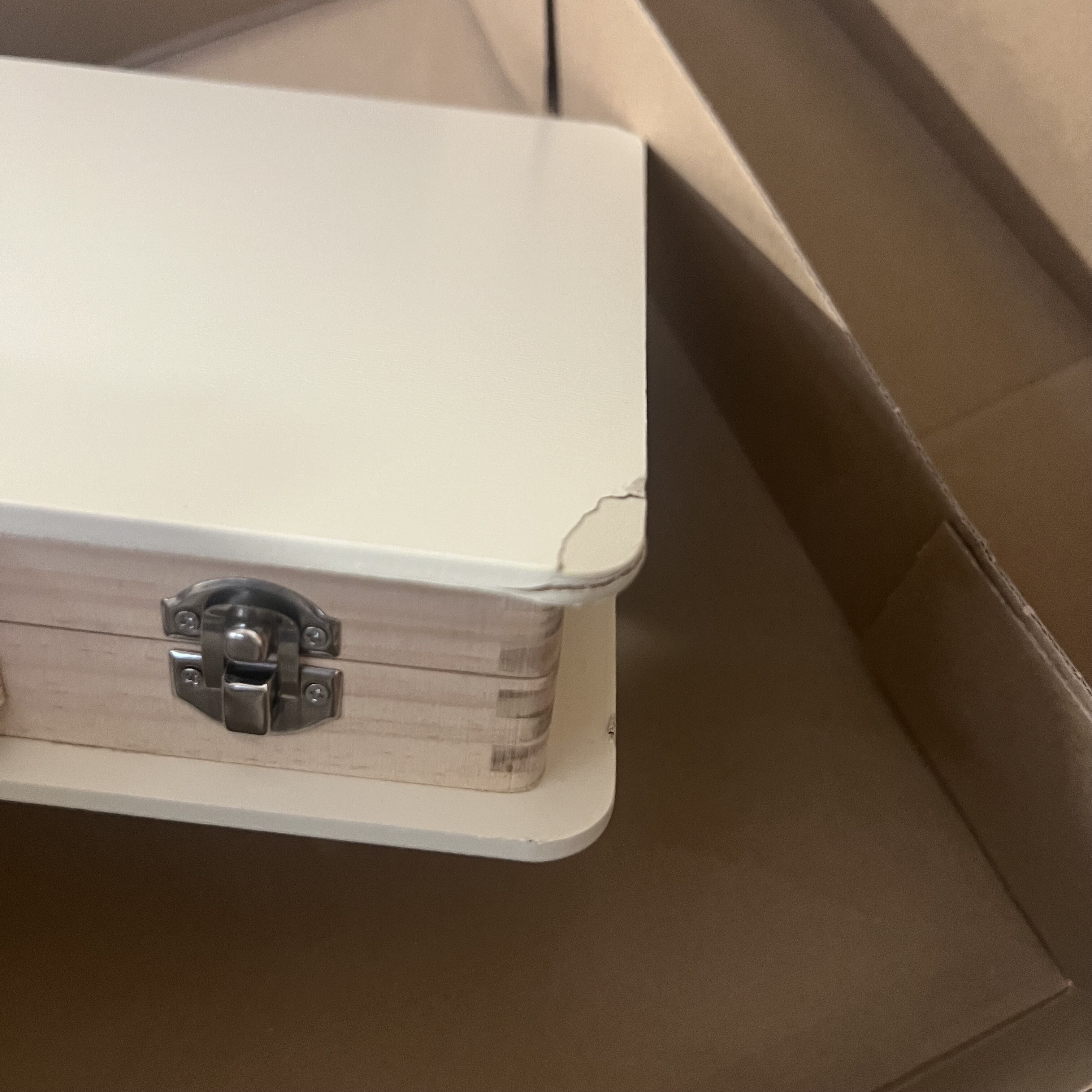 Kofer ima napuknute oba krajnja kuta.
