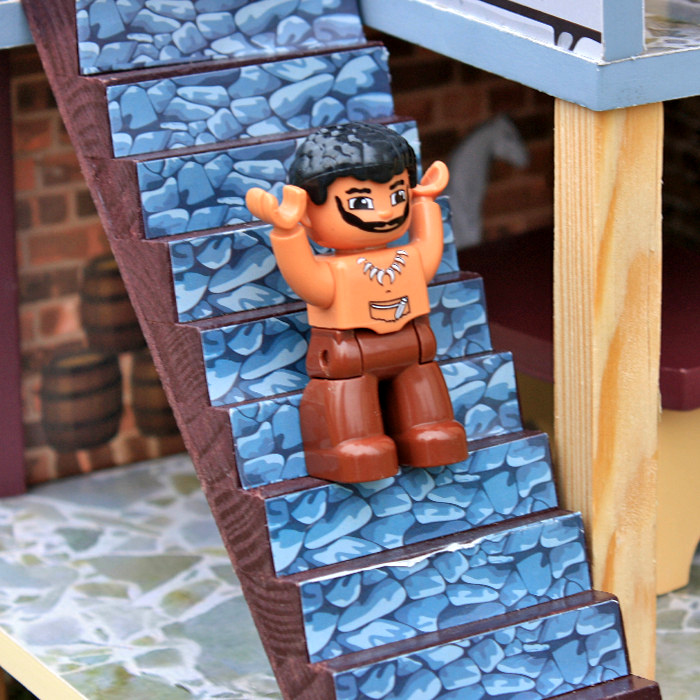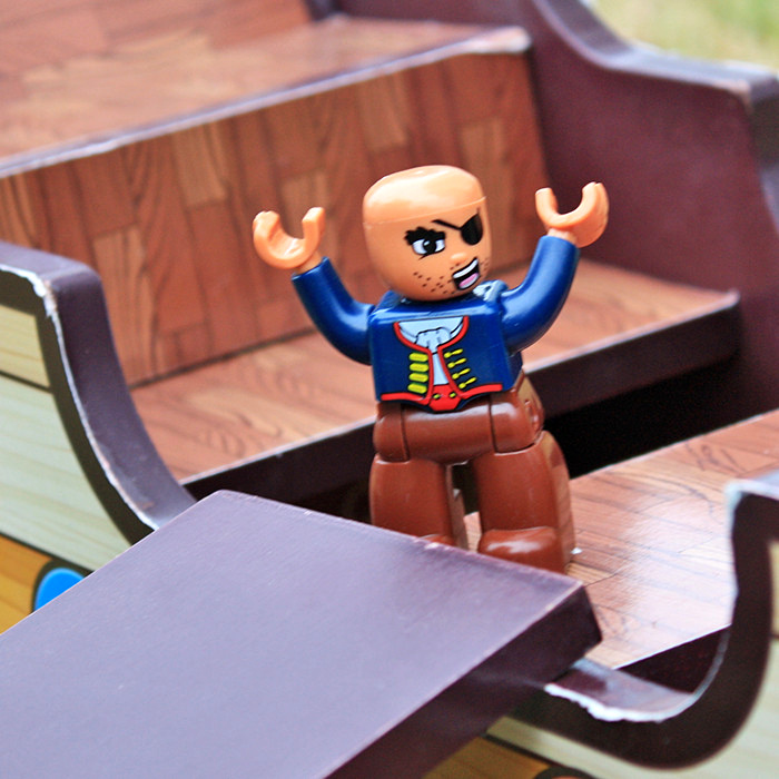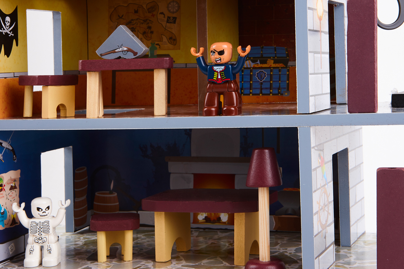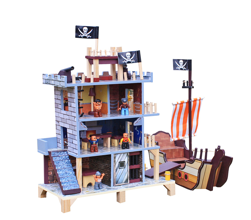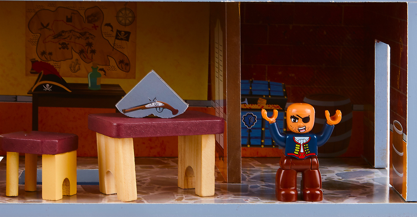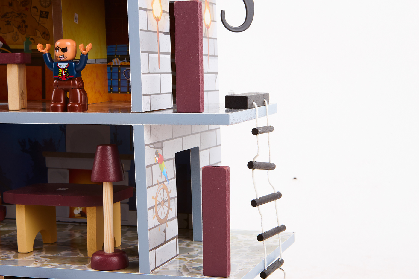 - Ne nedostaje zatvorska ćelija, stražarska kula sa zastavom i dva topa te luka za gusarski brod