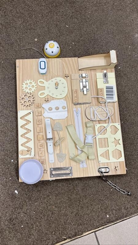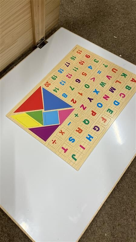 Ova edukativna ploča je kompletna i funkcionalna, Ima oštećene rubove i izvana je potrebno popraviti samostalno (npr. zalijepiti).