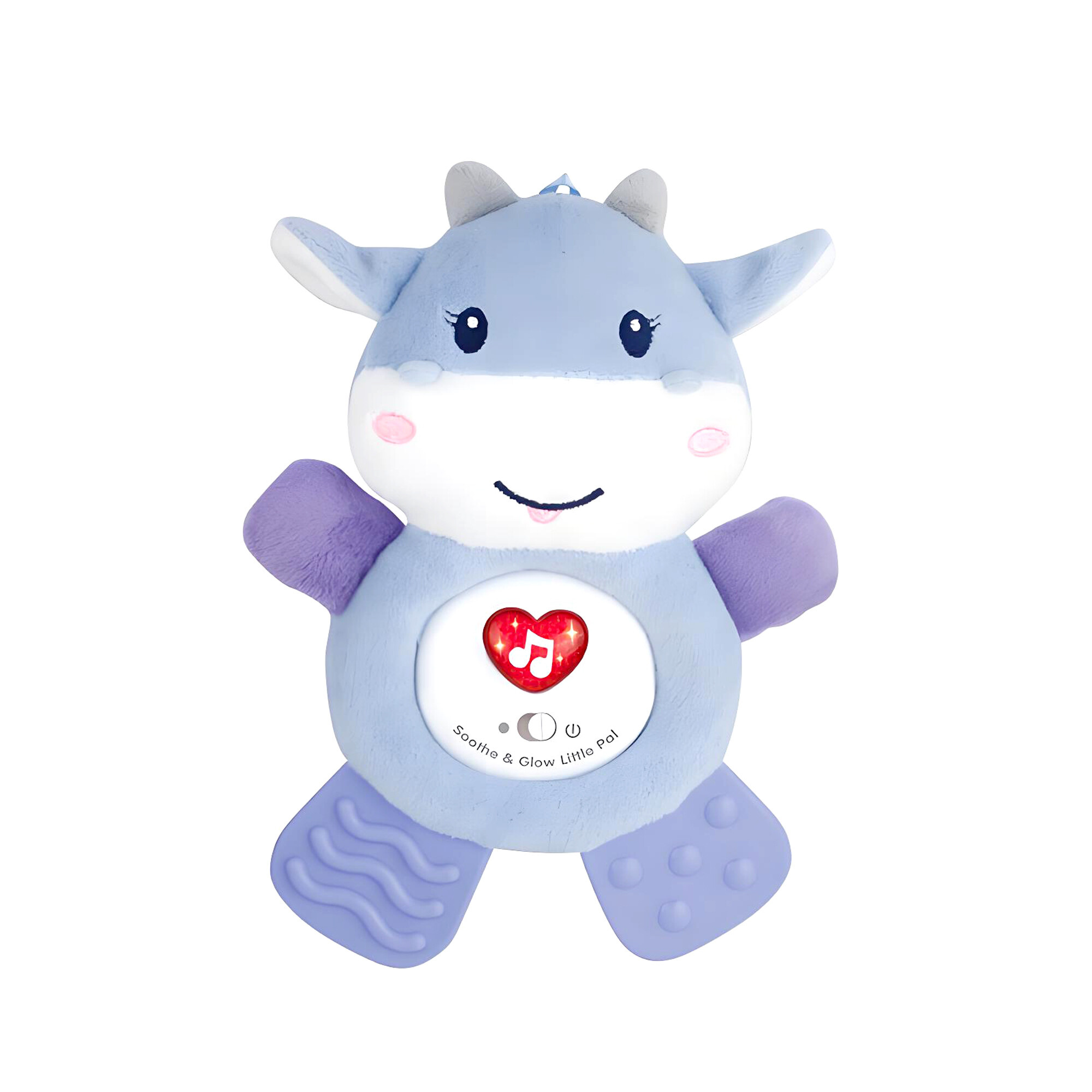 Pritiskom na srce na trbuščiću kravice aktiviraju se vesele melodije i srce počinje svijetliti u ritmu glazbe. To stimulira sluh i vid vaše bebe i podržava njegov senzorički razvoj.Kravicu lako objesite na dječja kolica, krevetić, dječju podlogu s lukom ili u automobil. Vaša beba će uvijek imati svog vjernog pratitelja nadohvat ruke.