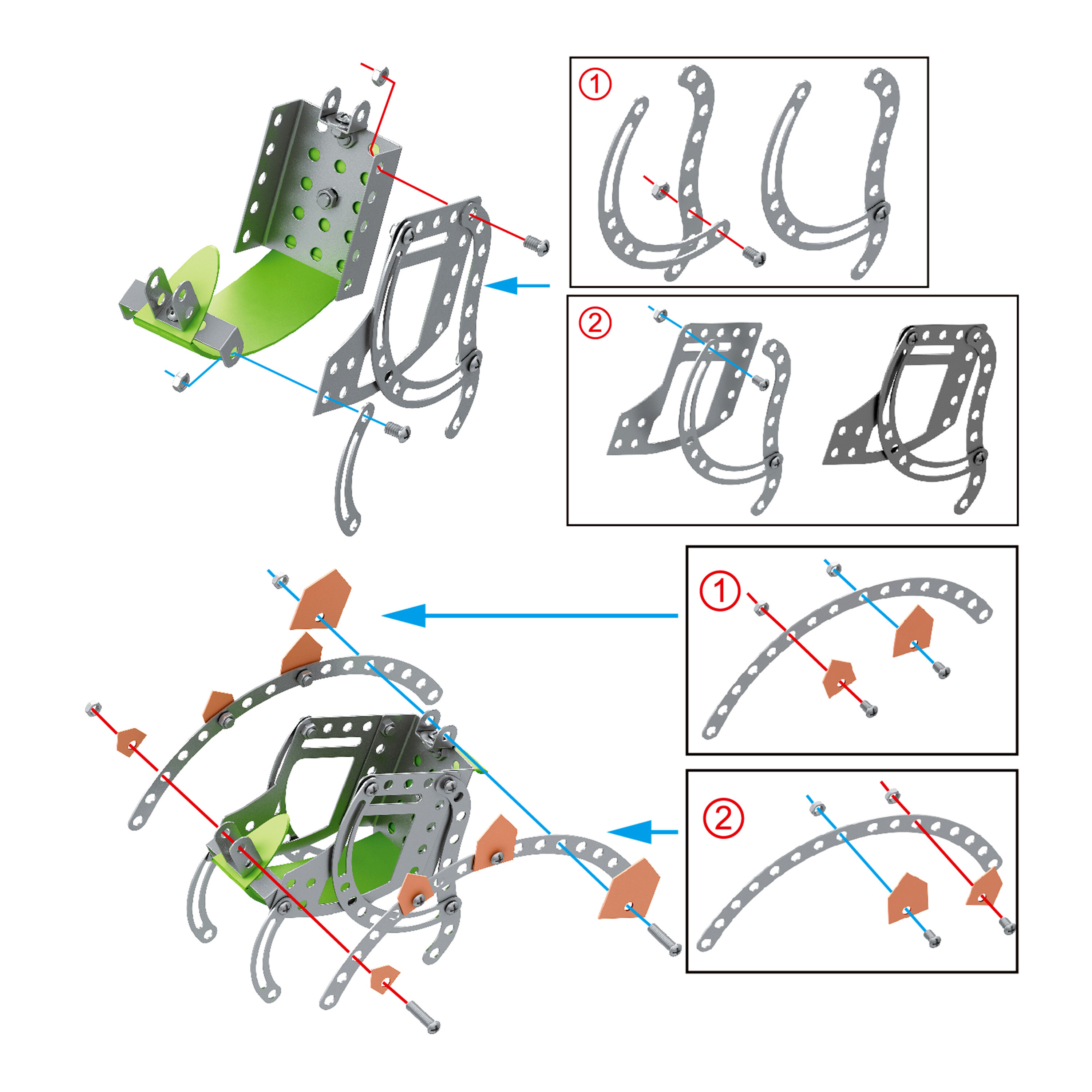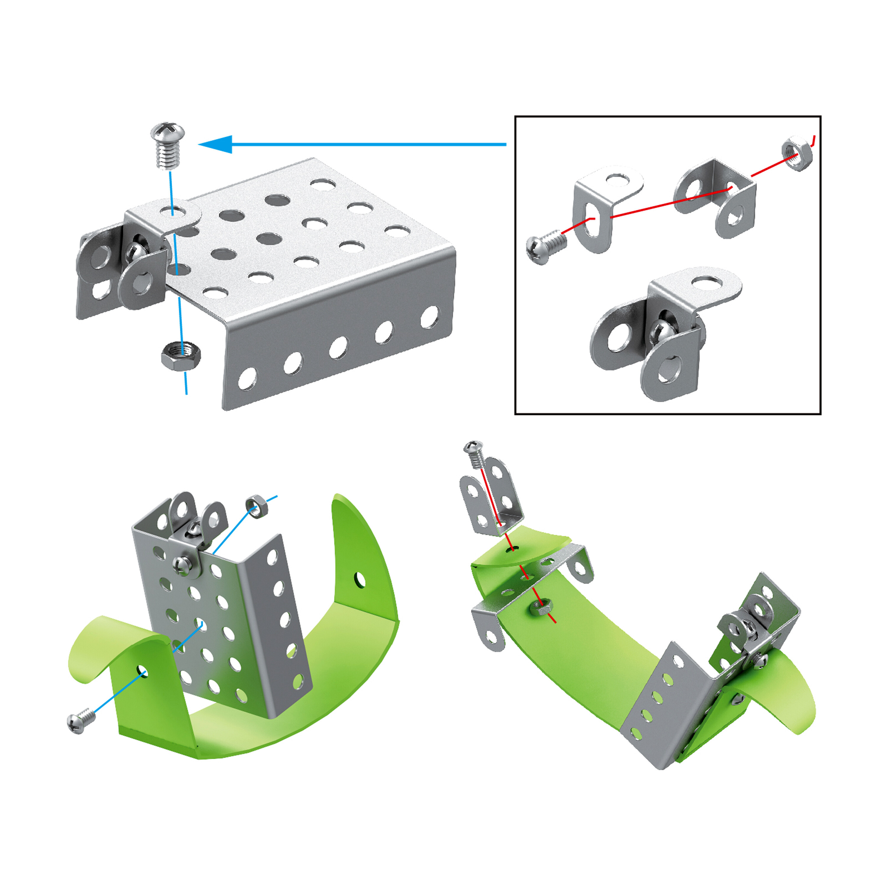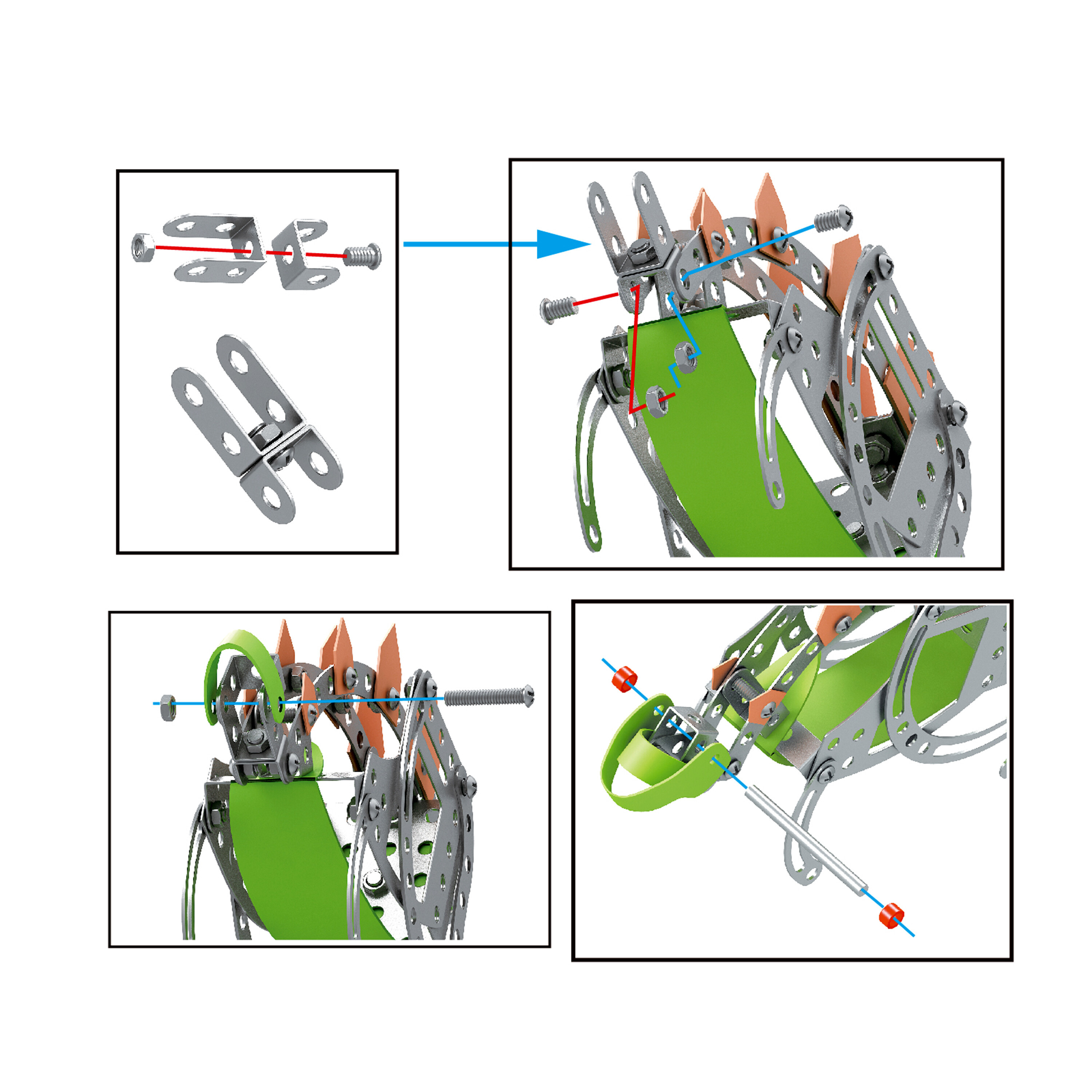 Set sadrži 125 različitih dijelova koji se mogu spajati pomoću vijaka i matica. To ne samo da pruža beskonačne mogućnosti konstrukcije, već također pomaže u razvoju fine motorike i konstrukcijskih vještina.