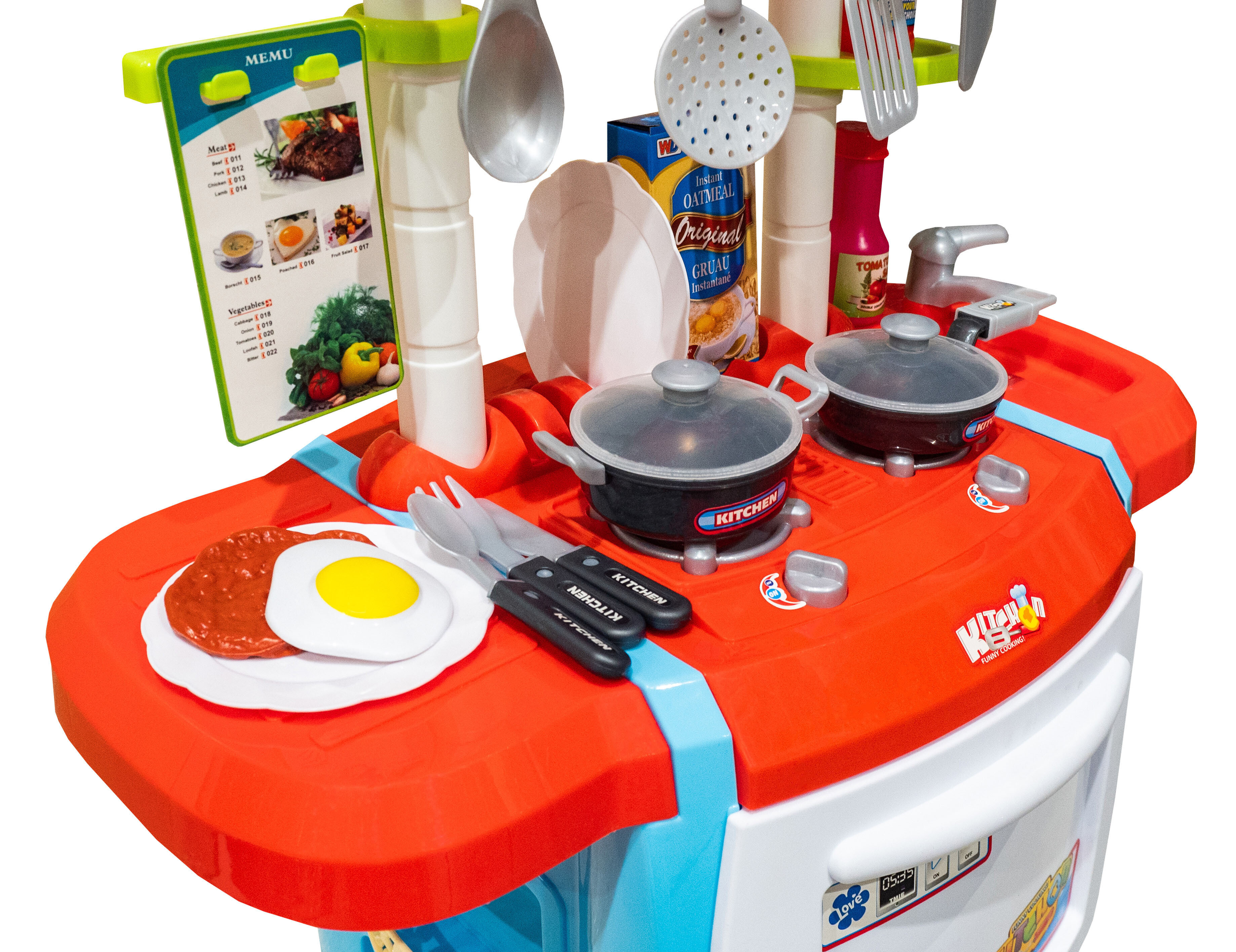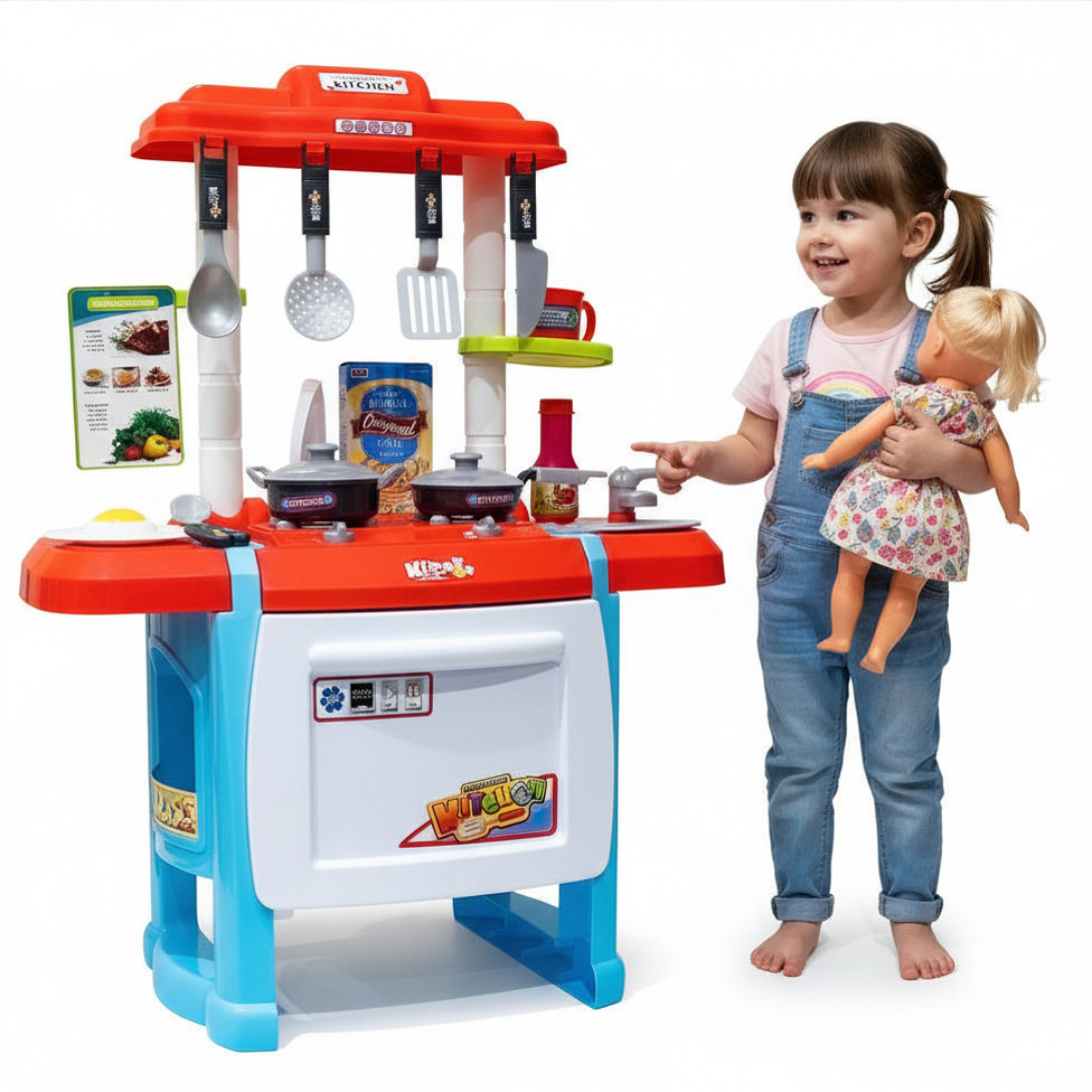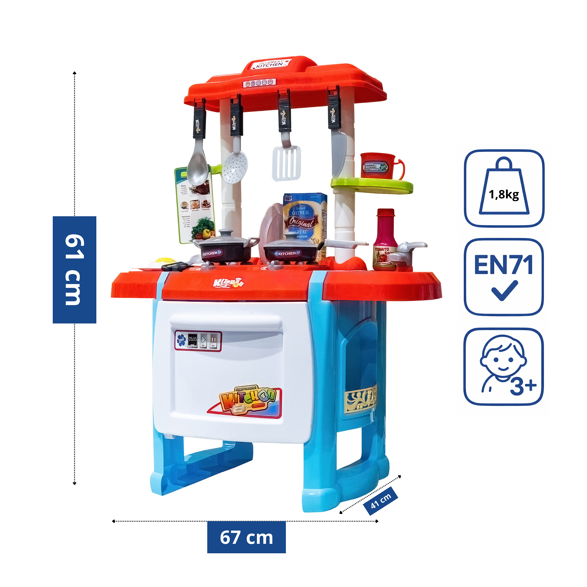 Uz dječju kuhinju dolazi i bogat pribor. Ova dječja kuhinjica je idealan poklon za svaku priliku.