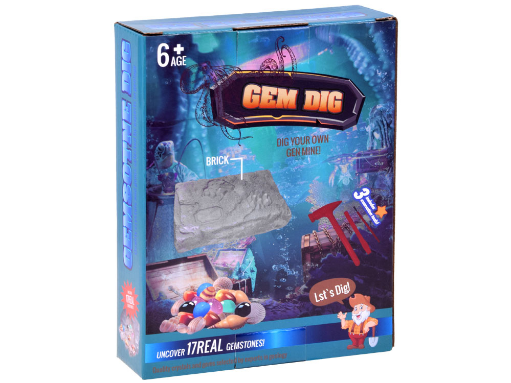 Obrazovni set za male arheologe i tragače za blagom. Set za iskopavanje kamena je izvrstan za sve male istraživače i otkrivače. Igračka za uradi sam koja simulira arheološka iskopavanja u novom, jedinstvenom i privlačnom obliku. Zadatak istraživača je pomoću čekića, dlijeta i četke dobiti kristale, dijamante i kamenje skriveno u gipsanom odljevku.