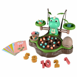 Igra vještine Lov na dinosaure za djecu je fascinantna zabava koja ne samo da pruža zabavu, već i potiče razvoj matematičkih i manualnih vještina kod najmlađih. Na bazi se nalazi pokretna meta s koje se mogu loviti mali dinosauri pomoću posebnih štapova. Iza štita nalazi se veliki dinosaur na kojem se djeca mogu igrati s vagom i karticama s zadacima i brojevima za učenje matematike. Set uključuje: - 21 malih dinosaura - vaga s dinosaurom - igraća ploča - dva otvarajuća jaja za sakupljene dinosaure - dvije štapove - kartice sa zadacima - brojevi 1-10 Napajanje: 2x AA Nije namijenjeno za djecu mlađu od 3 godine. Dimenzije pakiranja: 31x29,5x11cm Broj komada. na paleti 90 komada