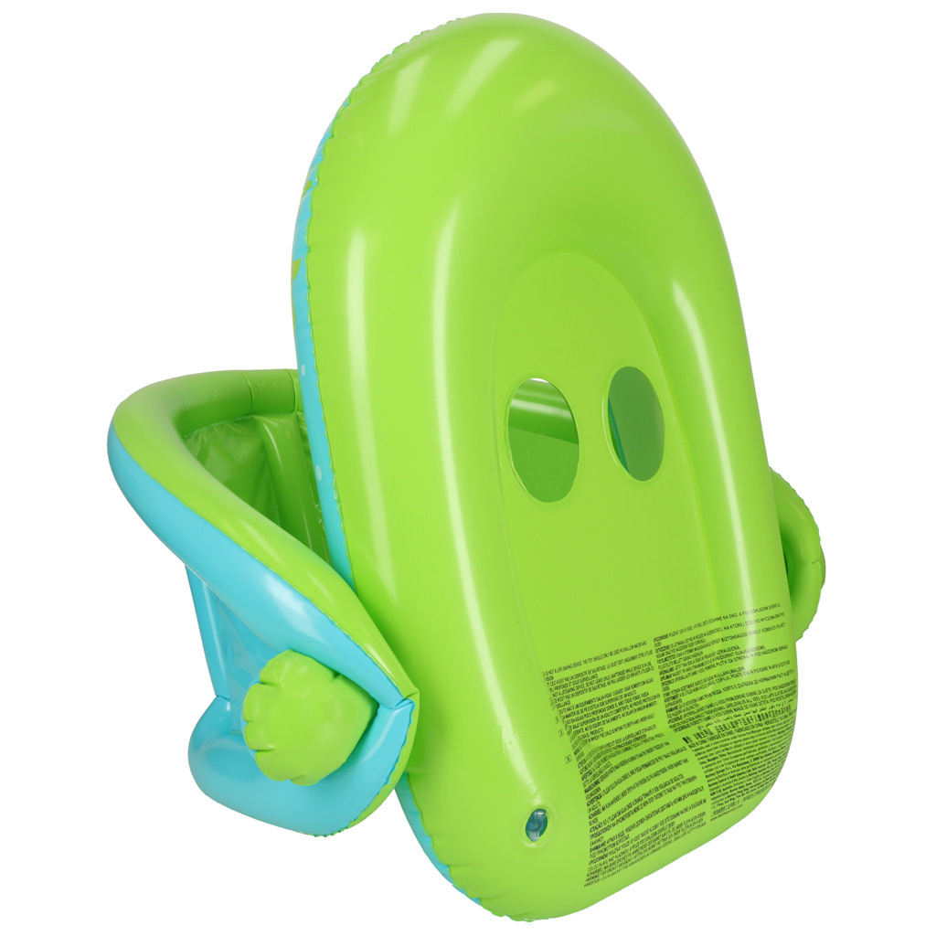 Zeleni krug sa sjedalom idealan je za malo dijete koje tek počinje učiti plivati. Zahvaljujući otvorima za noge, vaše će dijete stabilno sjediti u kolicima i neće ispasti iz njih. Napuhujući krović pruža zaštitu osjetljivoj koži vašeg djeteta od štetnih sunčevih zraka. Osim toga, prilikom odlaska na bazen, krović se može ukloniti. Bicikl je izrađen od izdržljivog PVC-a, tako da će izdržati više od jedne ljetne sezone.