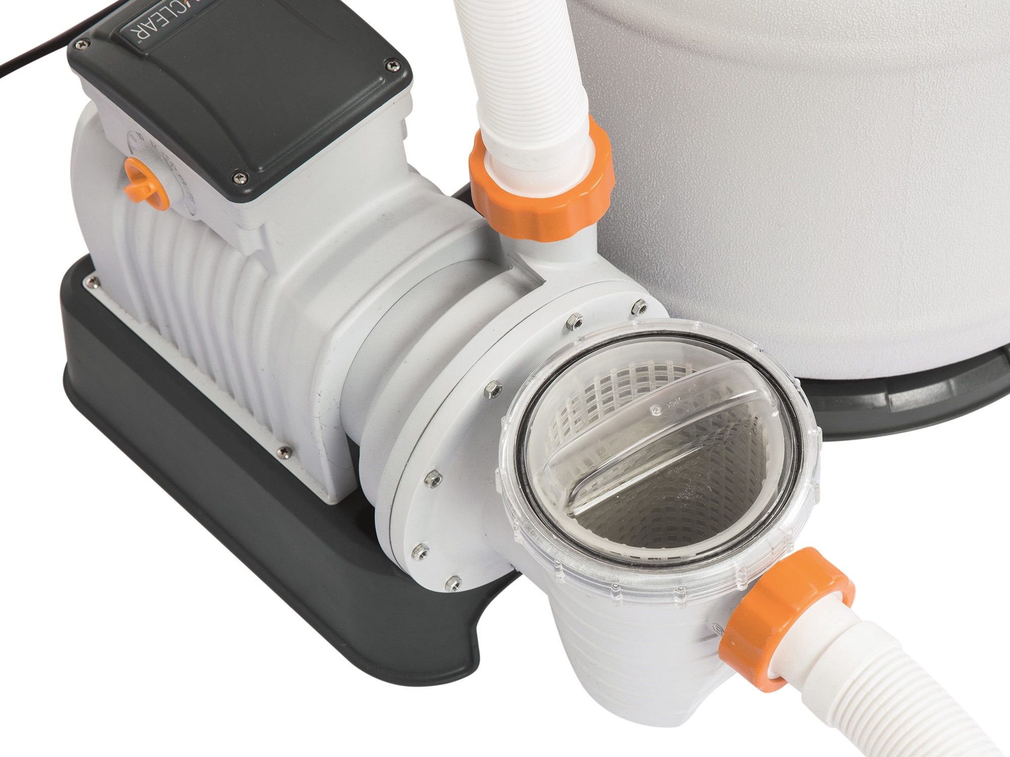 Konkretno se radi o zaustavljanju protoka vode, ispiranju, ispuštanju vode iz bazena i cirkulaciji bazenske vode. Pumpa također ima mjerač vremena s podesivim automatskim radnim vremenom i manometar.