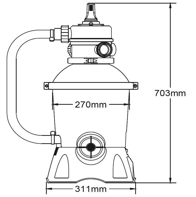 Filtarska posuda povezana je s pumpom fleksibilnim crijevom. Količina pijeska u filtru je 8,5 kg.