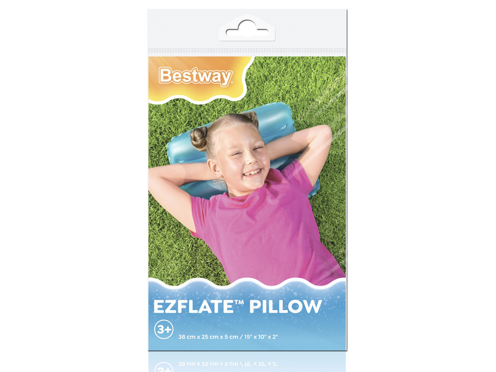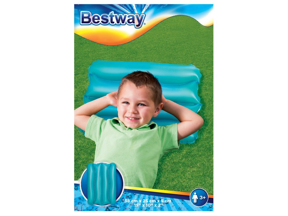 Praktičan i udoban jastuk tvrtke Bestway idealan je za korištenje kod kuće, u kampu ili tijekom putovanja automobilom. Jastuk je izrađen od izdržljivog vinila u lijepoj, svijetloplavoj boji. Ima sigurnosni ventil koji sprječava istjecanje zraka. Za veću udobnost na površini jastuka nalaze se posebni utori. Tijekom dana dobro služi kao podloga za sjedalo, a noću kao jastuk za spavanje.