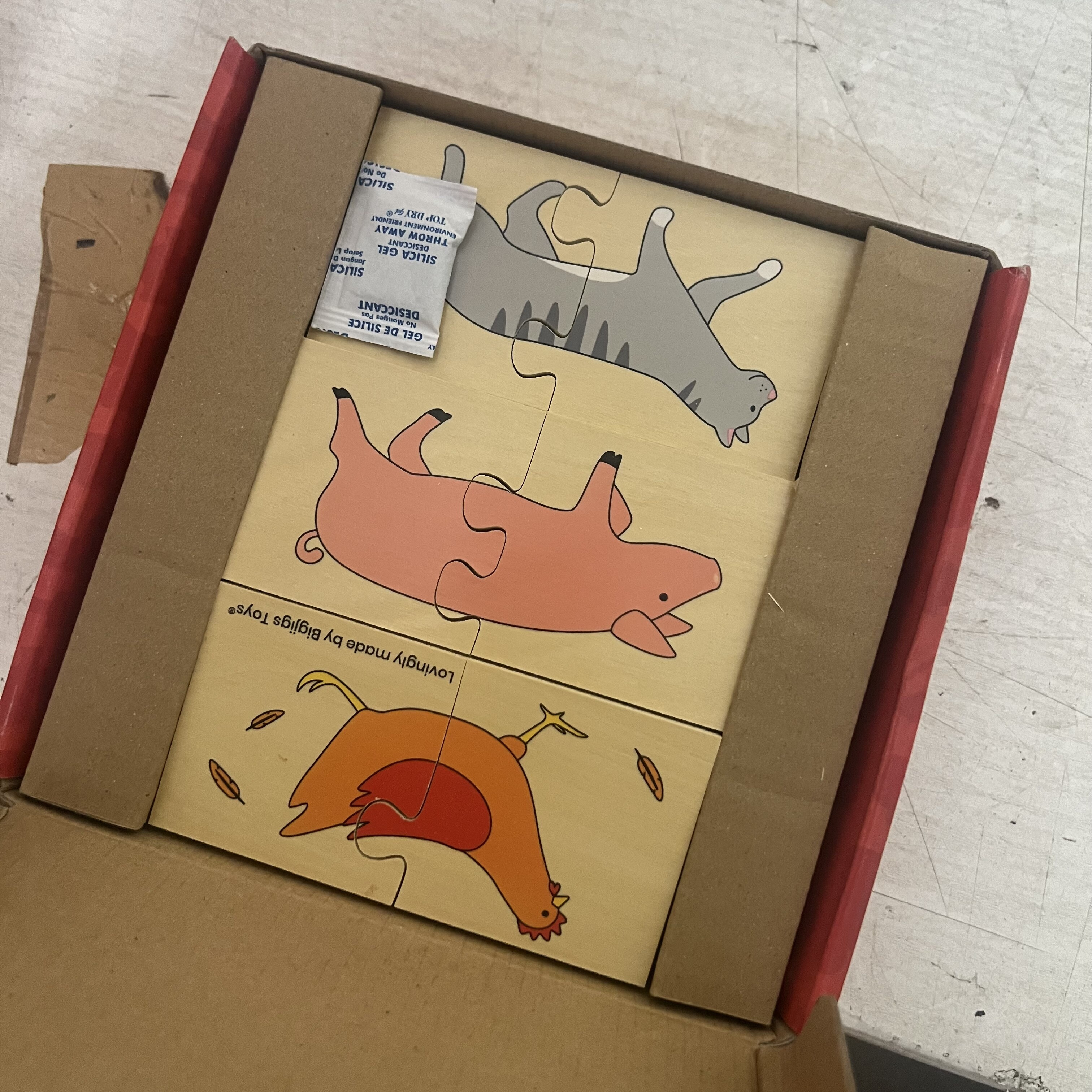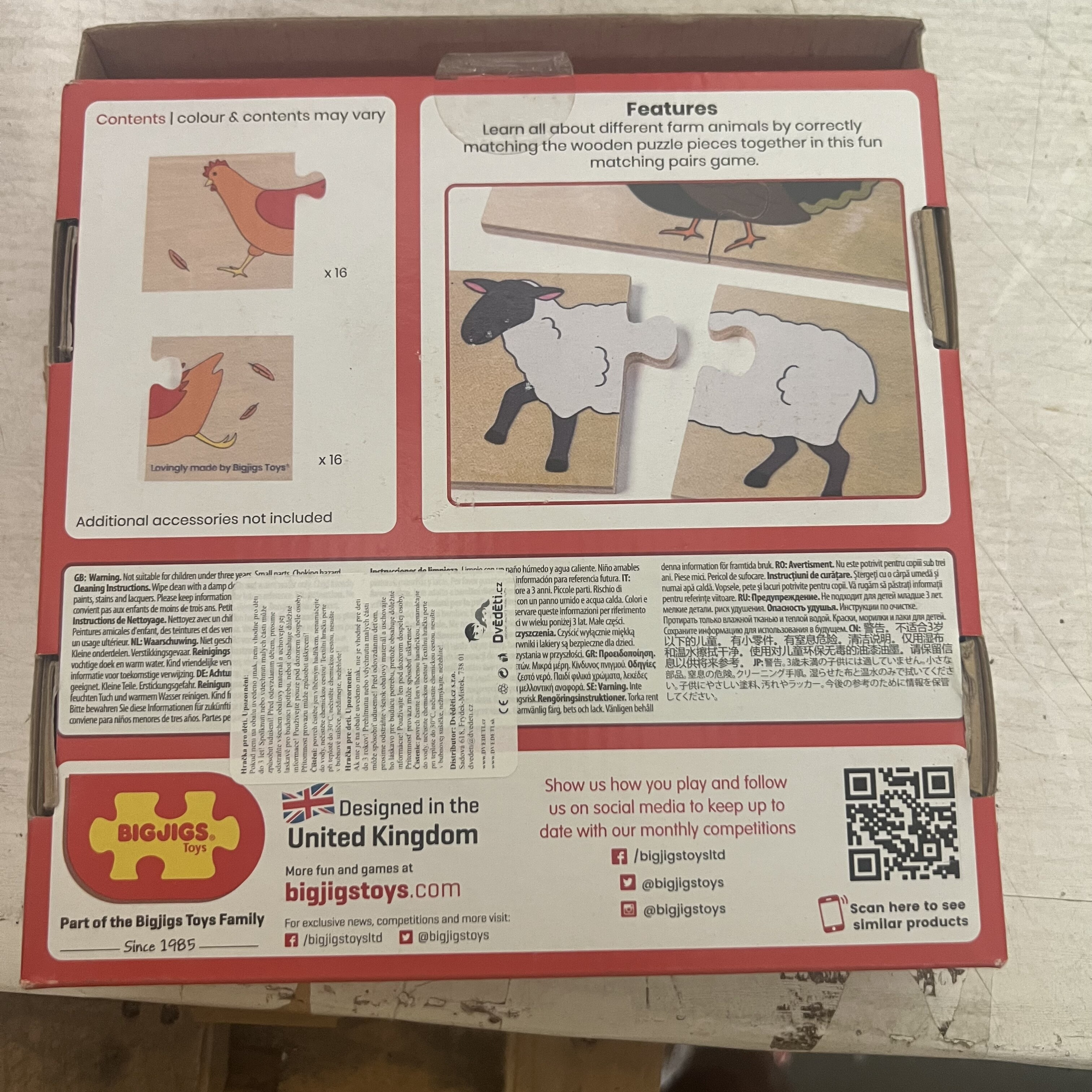 Naučite sve o različitim domaćim životinjama pravilnim slaganjem drvenih dijelova slagalice u ovoj zabavnoj igri.Cilj igre je spojiti dva ispravna dijela.Svaki glatki drveni komadić slagalice ima idealnu veličinu za male ručice, kako bi se lako mogao podići, uhvatiti, istražiti i zamijeniti.Pomaže razvijati koordinaciju pokreta, slaganje životinja.To je također sjajna prilika da djeca nauče sve o životinjama.Izrađeno od visokokvalitetnih, odgovorno dobivenih materijala.Ispunjava trenutne europske sigurnosne norme. Izrađeno od visokokvalitetnih, odgovorno dobivenih materijala.