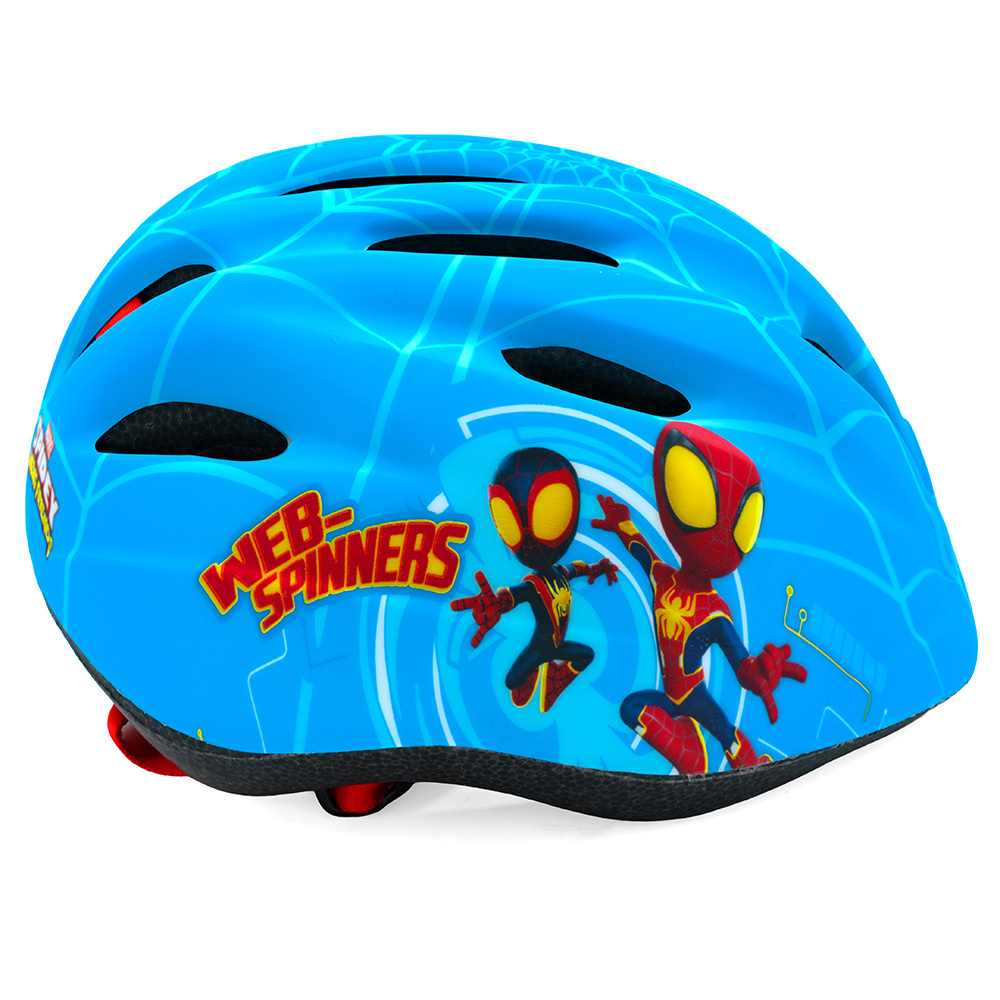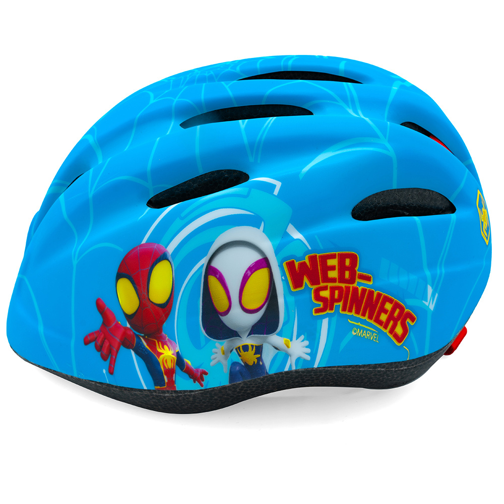 Bezpečná, vysoce kvalitní helma navržená pro nejmladší jezdce. Dobře se hodí při učení dítěte jezdit na kole a jiných vozidlech. Poskytne pohodlí, když dítě cestuje v sedačce na vašem kole. Vnější helma je vyrobena z matného PVC a zdobena postavami ze SPIDEY. Uvnitř je vyrobeno z černé pěny EPS pohlcující nárazy. Helma je vybavena nastavovacím knoflíkem pro přizpůsobení helmy hlavě dítěte, popruhy na obou stranách se zapínají pod bradou pomocí přezky s měkkou podložkou. V plášti helmy je 12 ventilačních otvorů. čistá hmotnost: 180 g Helma splňuje požadavky normy EN 1078:2012+A1