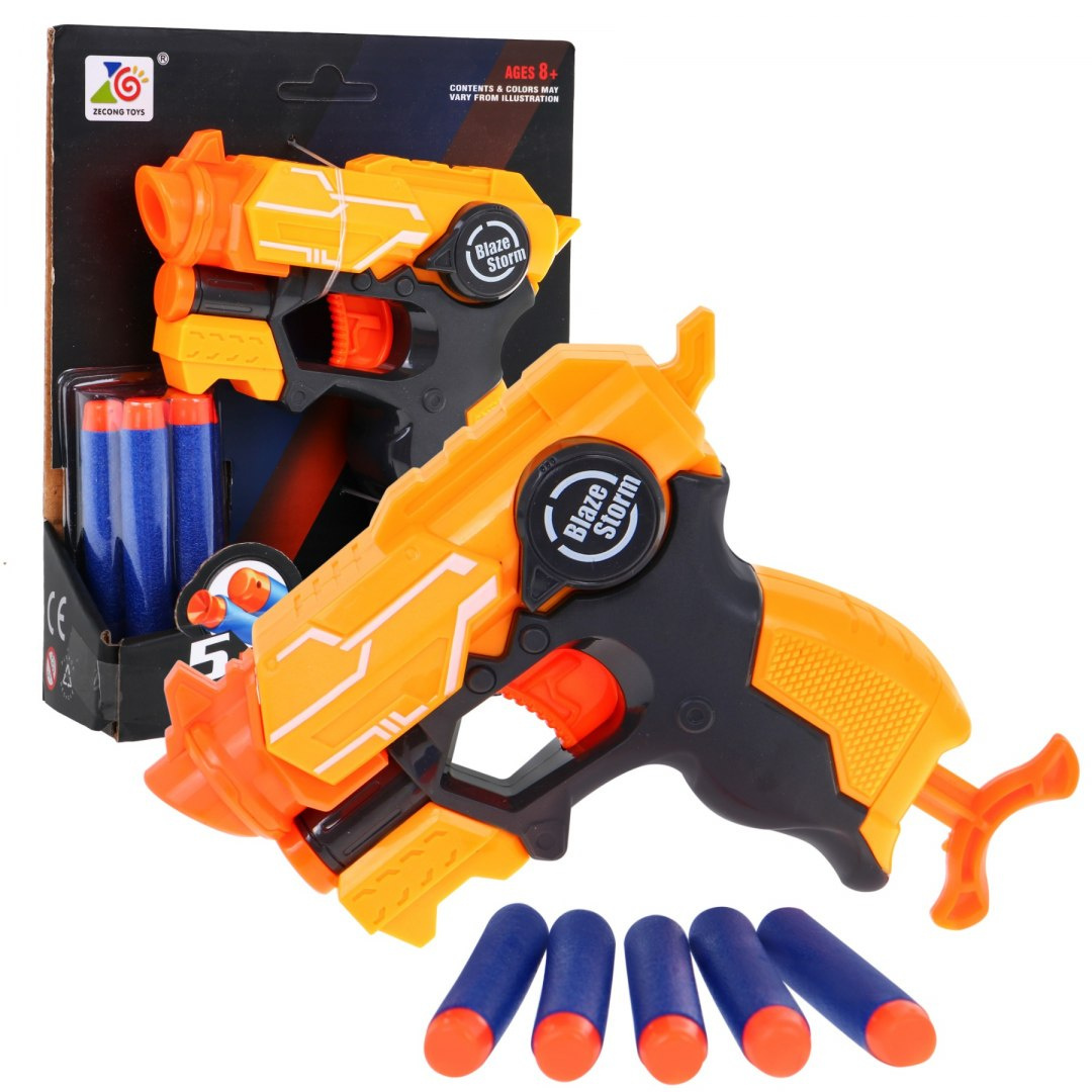 Blaze Storm je kompaktan, jednostavan za korištenje pištolj. Igračka ne zahtijeva baterije. Dovoljno je umetnuti metak u cijev, povući polugu dolje i pritisnuti okidač. Strijele su od mekane pjene s gumenim vrhom i lete vrlo daleko. Zbog malih dimenzija, oružje se može doslovno ponijeti bilo kamo.
