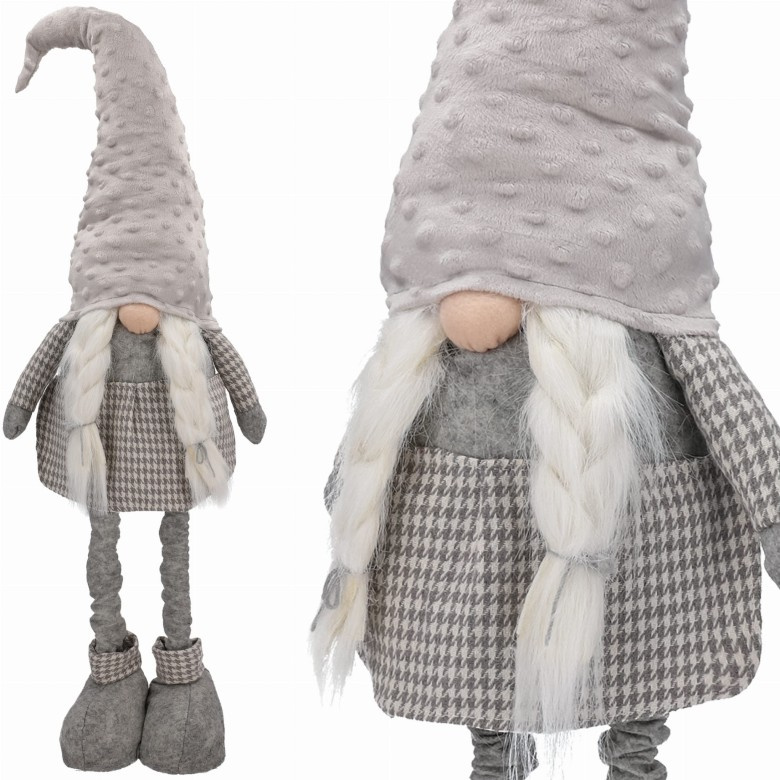 DUH - DUH na teleskopskim nogama A-899391 Visina: 60 - 90 cm (s kapom) Širina: 27 cm PREKRASNA DEKORACIJA - savršena ideja za poklon Patuljci su dobri duhovi svakog doma. Zahvaljujući težini, figurica stoji stabilno i najbolje se osjeća na kaminu, uz mirisno božićno drvce i u dječjoj sobi. boja: nijanse sive prekrasna točkasta krznena kapa