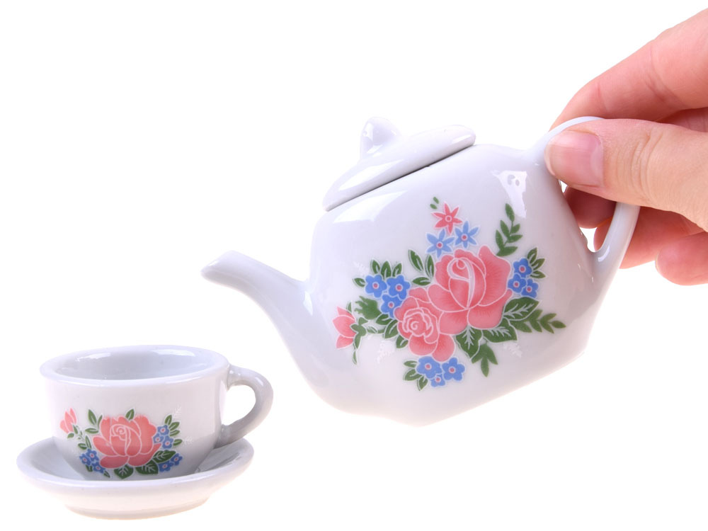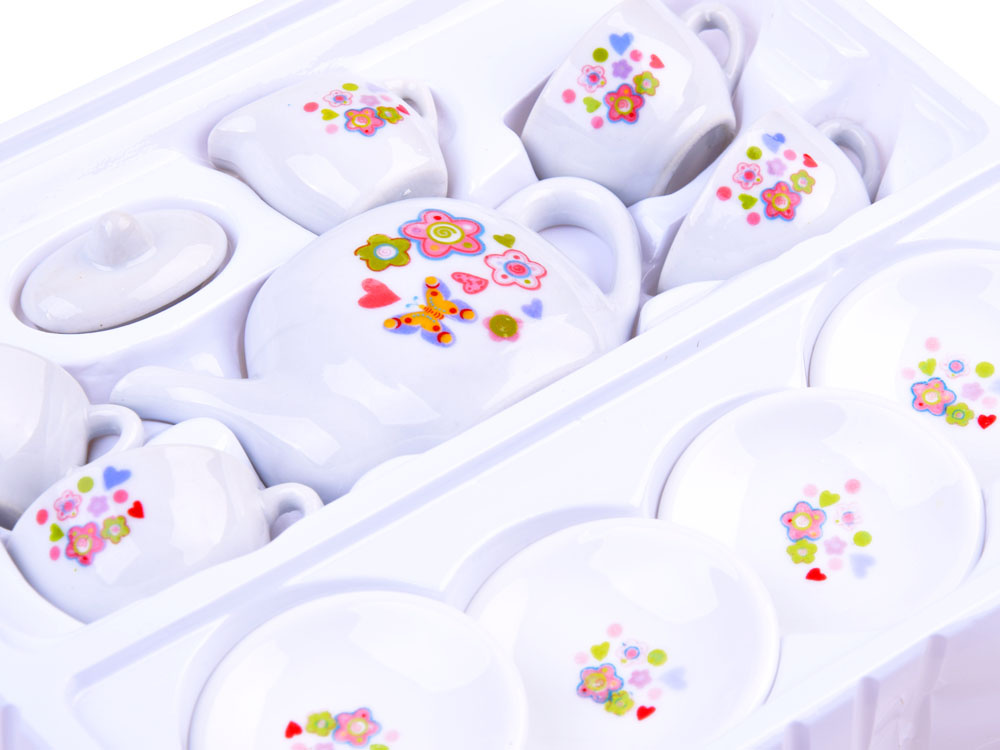 Set je izrađen od keramike i izvrsno imitira pravi doručkovni servis. Djeca često vole pomagati roditeljima u kuhinji, pa će sada moći pripremiti ukusni čaj i za svoje lutke i medvjediće.