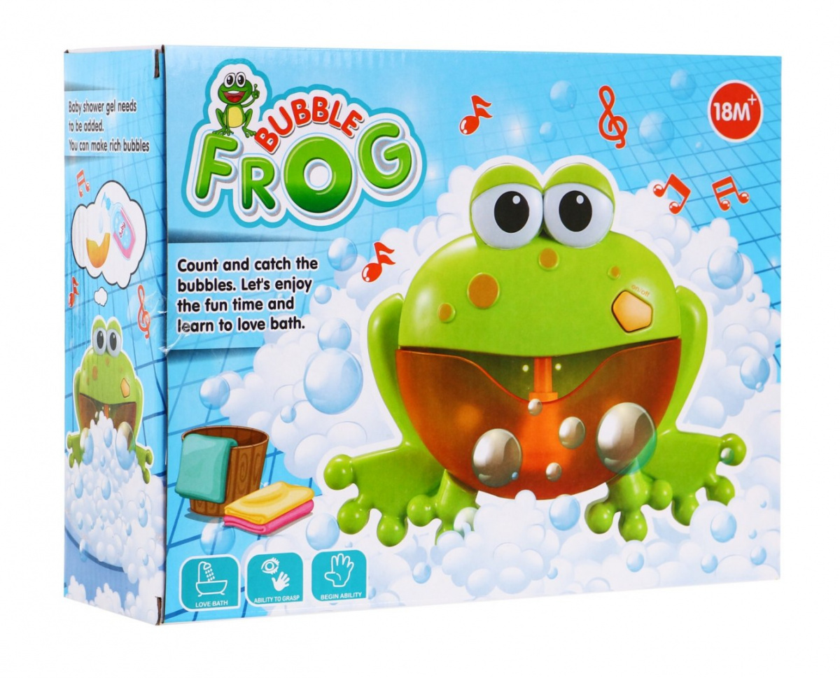 Ova igračka za kadu, glazbena žabica koja stvara mjehuriće, namijenjena je djeci od 18 mjeseci. Igračka se napaja s 2 x 1,5V AA baterijama - nisu uključene u pakiranje. Mjehurić žabu je lako sastaviti, straga ima 3 usisne čašice, tako da se lako i trajno može pričvrstiti na zid ili kadu. Na trbuhu žabe nalazi se posuda za tekućinu. Trebala bi se nadopuniti vodom i malom količinom dječjeg sredstva za kupanje ili šampona. Što više tekućine ili šampona dodate, to će nastati više mjehurića. Nakon uključivanja, žaba stvara neprekidan tok sapunskih mjehurića. Igračka može raditi u 2 načina rada. U prvom svira melodija i izlaze mjehurići, u drugom se stvaraju samo mjehurići.