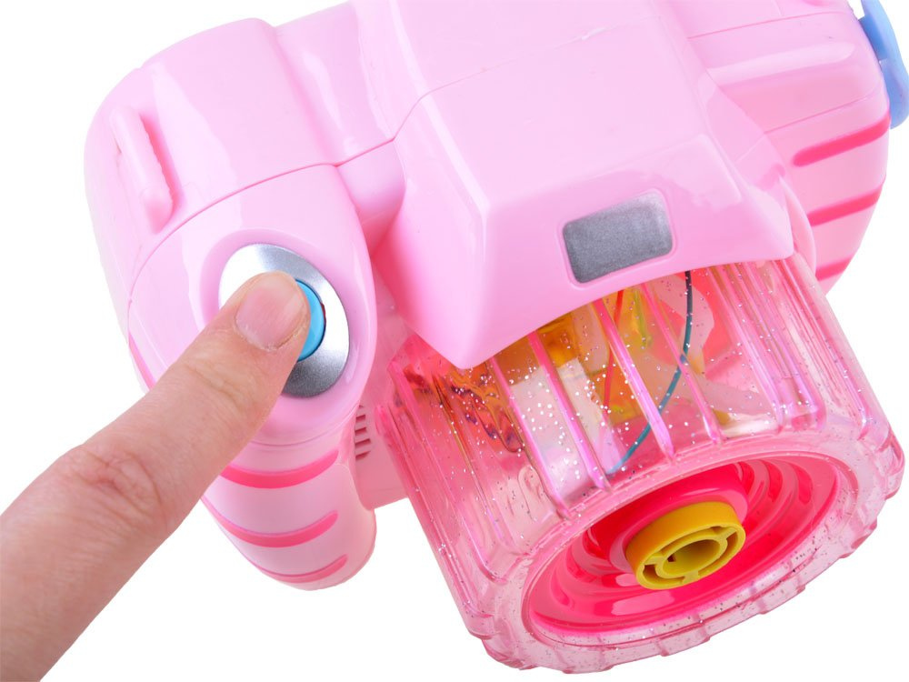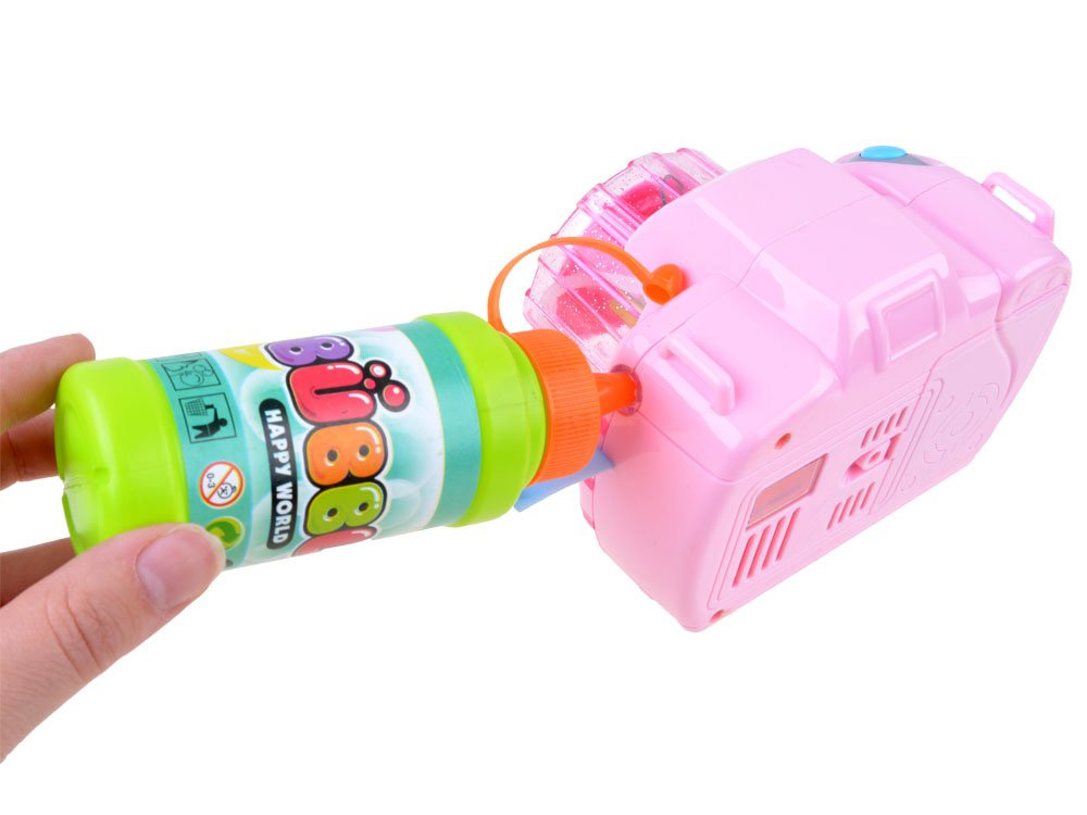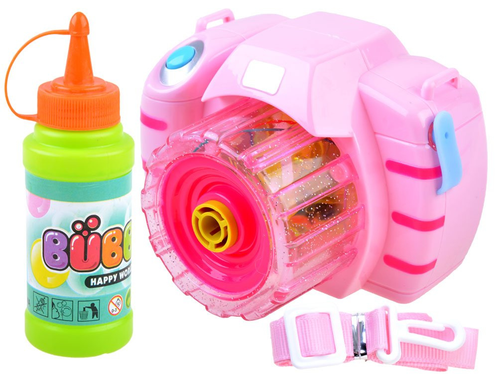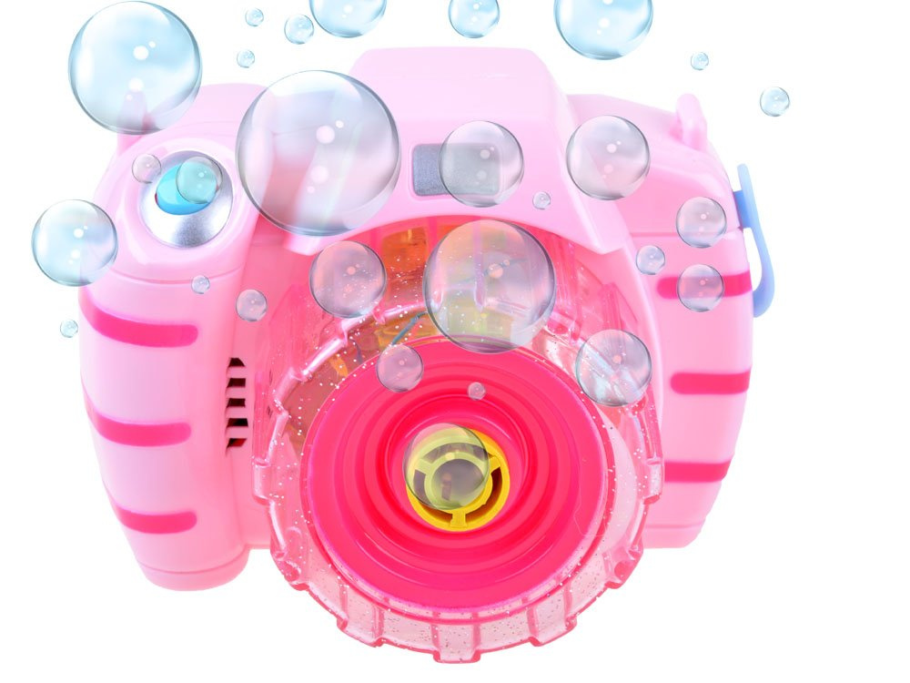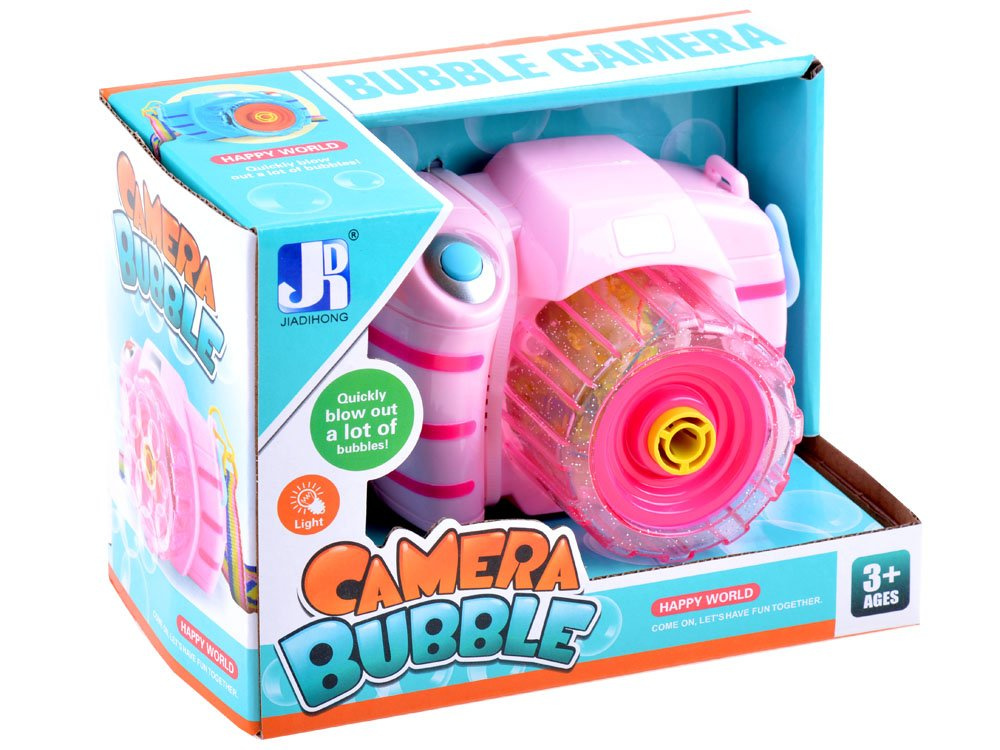 Igračka u obliku fotoaparata poslužit će kao pomagala za stvaranje prekrasnih duginih mjehurića. Dovoljno je uliti ispravnu tekućinu u uređaj, pritisnuti gumb i vaše dijete će biti očarano čarolijom šarenih mjehurića koji izlijeću iz fotoaparata. Mjehurići prate zanimljivi svjetlosni efekti i vesela melodija.