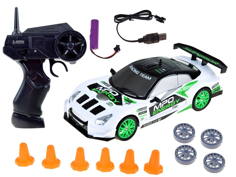 Igračka se upravlja daljinski pomoću 2,4GHz daljinskog upravljača koji ima ugrađenu antenu. Automobilom možete voziti naprijed, unatrag, skretati desno i lijevo. Dio seta uključuje rezervni kotač i set čunjeva za stvaranje nevjerojatne trkaće staze za utrkivanje ili driftanje.