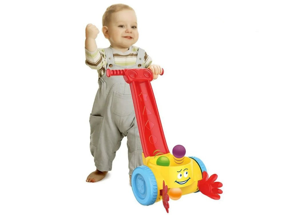 Igračka zahtijeva 2 baterije 1,5 V AA (nisu uključene u pakiranje). Kada dijete počne gurati guralicu, iz igračke se čuju veseli zvukovi, poput vesele glazbe, izmjenični zvukovi motora, aviona i lokomotive.