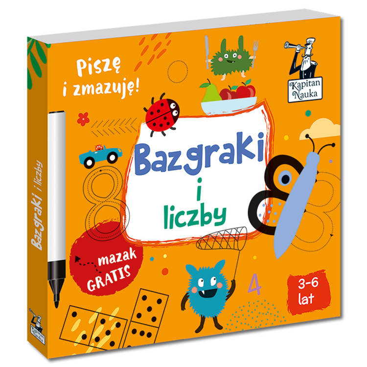 Škrabotine i brojevi. Pišem i razmazujem! (3-6 godina) je grafička knjiga koja djecu priprema da nauče brojati do 10. Zajedno s prijateljskim Bazgrakom djeca rješavaju razne zanimljive grafičke zadatke, m.in. crtati brojeve na stazu, tražiti brojeve skrivene u predmetima, igrati domino i pokušati čitati vrijeme na satu. Tako se postupno upoznaju s brojevima i otkrivaju da je svaki broj određeni skup elemenata.Rješavanjem zadataka dijete se priprema za izazove ranog djetinjstva, m.in. uči se razlikovati pisane brojeve, razumije pojam količine i uspoređuje brojeve skupova.