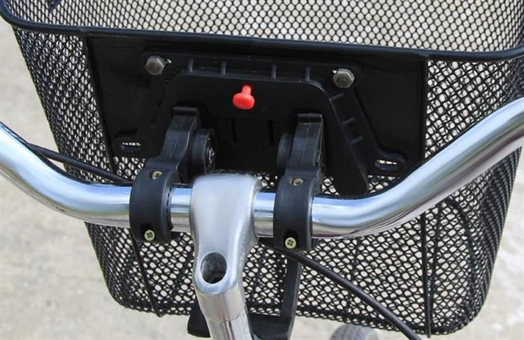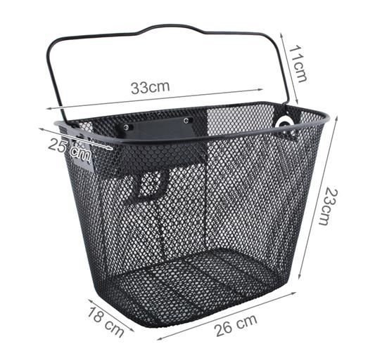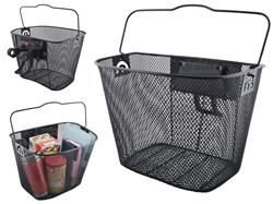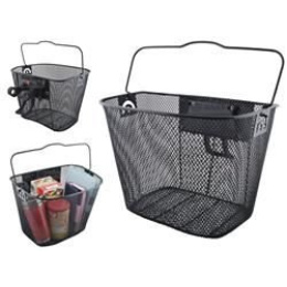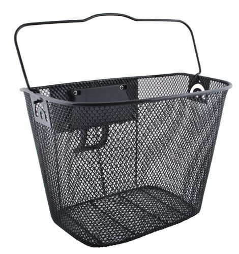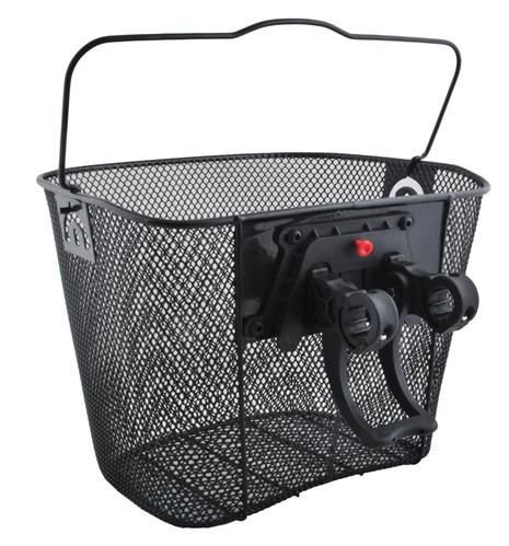 Metalna košara za bicikl odgovara svim modelima s veličinom kotača 20", 24", 26", 27", 28" i promjerom upravljača 25 mm. Stoga je prikladan za obične, gradske, turističke i MTB bicikle. s ili bez amortizera Metalna košara za bicikl montira se pomoću udobne CLICK ručke, kao i svi potrebni montažni elementi.