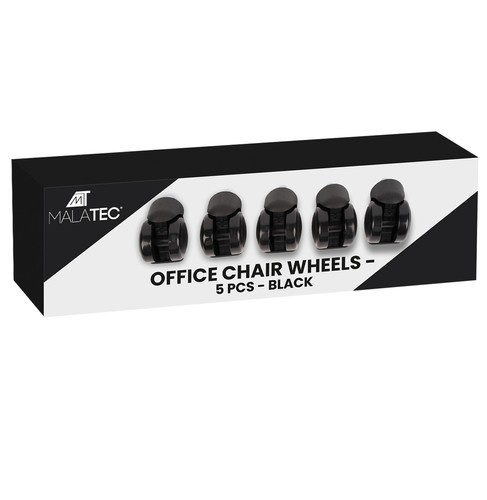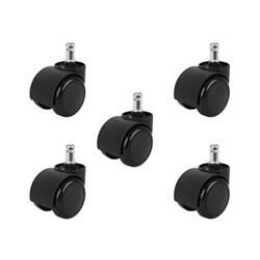 -  UNIVERZALNO   - set sadrži 5 kotačića, koji omogućuju zamjenu cijele petokrake baze   za uredske, gamerske, okretne ili pisaće stolice . Set odgovara većini stolica dostupnih na tržištu s promjerom vretena od 11 mm.   Montaža "na klik" je brza i jednostavna, dovoljno je pritisnuti klin .