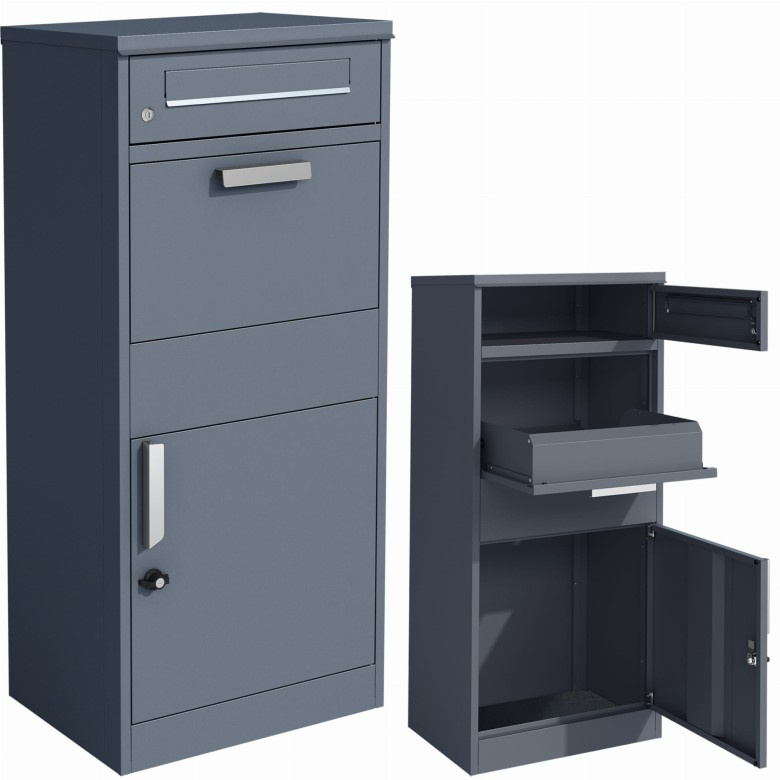 Kutija je izrađena od izdržljivog materijala koji jamči njezinu dugotrajnost. Otporan je na vremenske uvjete i osigurava sigurno pohranjivanje pošiljki. Zahvaljujući njegovom kapacitetu, mogu se pohranjivati paketi različitih veličina, bilo da se radi o malim pošiljkama ili većim paketima. Ne čekajte i osigurajte udobnost i mir postavljanjem ovog stojećeg sandučića za pakete ispred vaše kuće. Kutija je opremljena zasunom koji onemogućuje vađenje jednom umetnutog paketa.