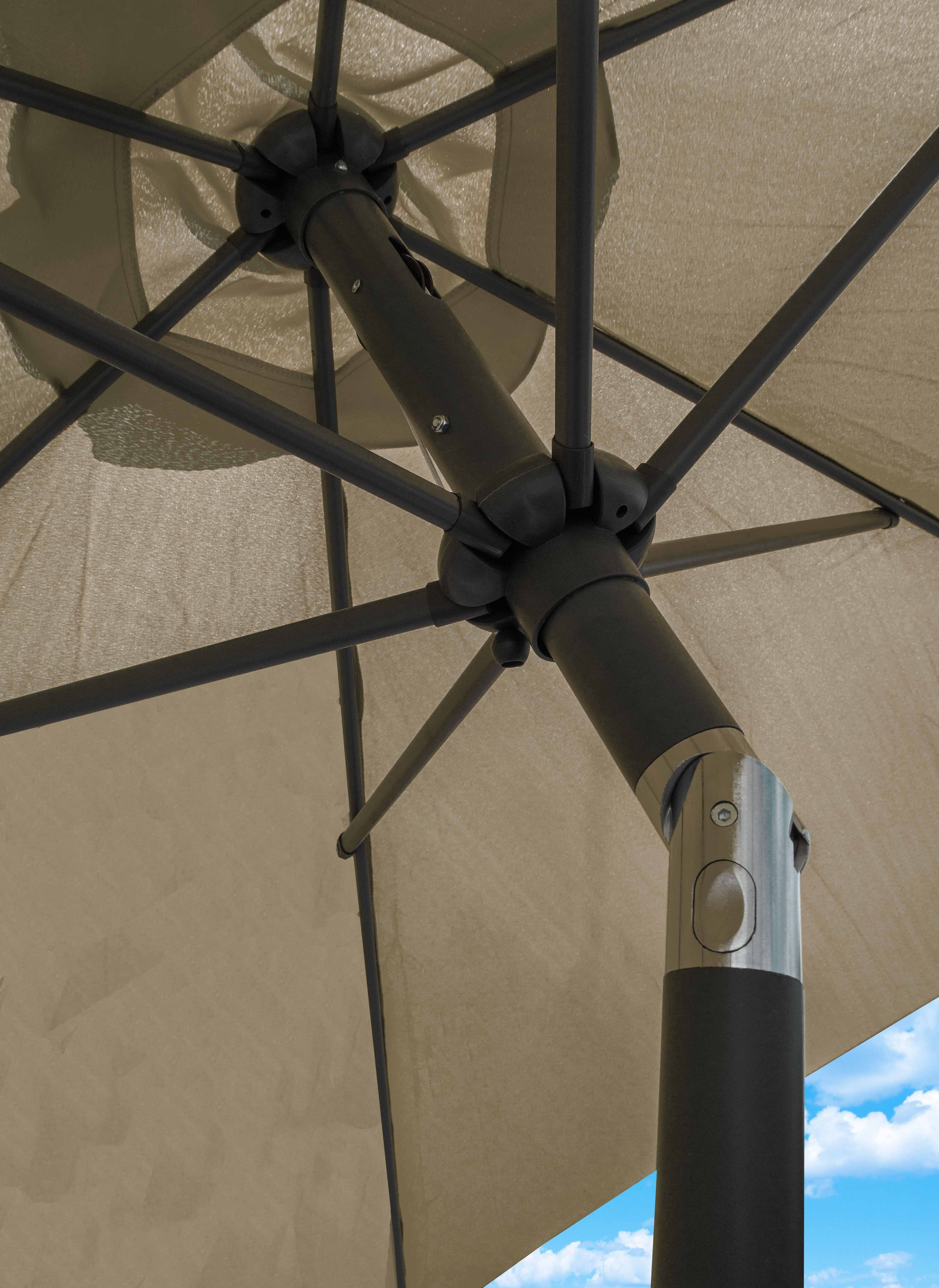 Jednostavno rukovanje pri rasklapanju i sklapanju suncobrana osigurava jednostavan mehanizam s ručkom.