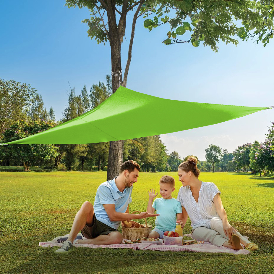 S obzirom na trokutasti oblik i ušice za pričvršćivanje u svakom kutu platna, postavljanje sjenila je vrlo jednostavno.
