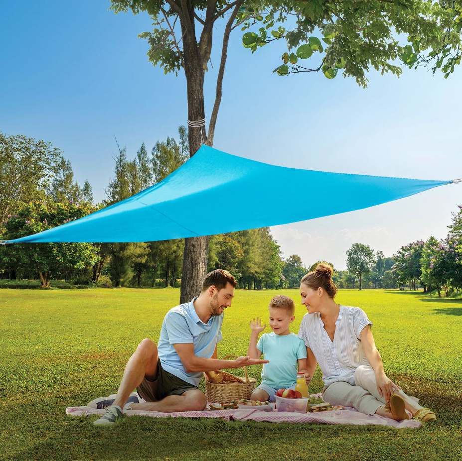 S obzirom na trokutasti oblik i ušice za pričvršćivanje u svakom kutu platna, postavljanje sjenila je vrlo jednostavno.