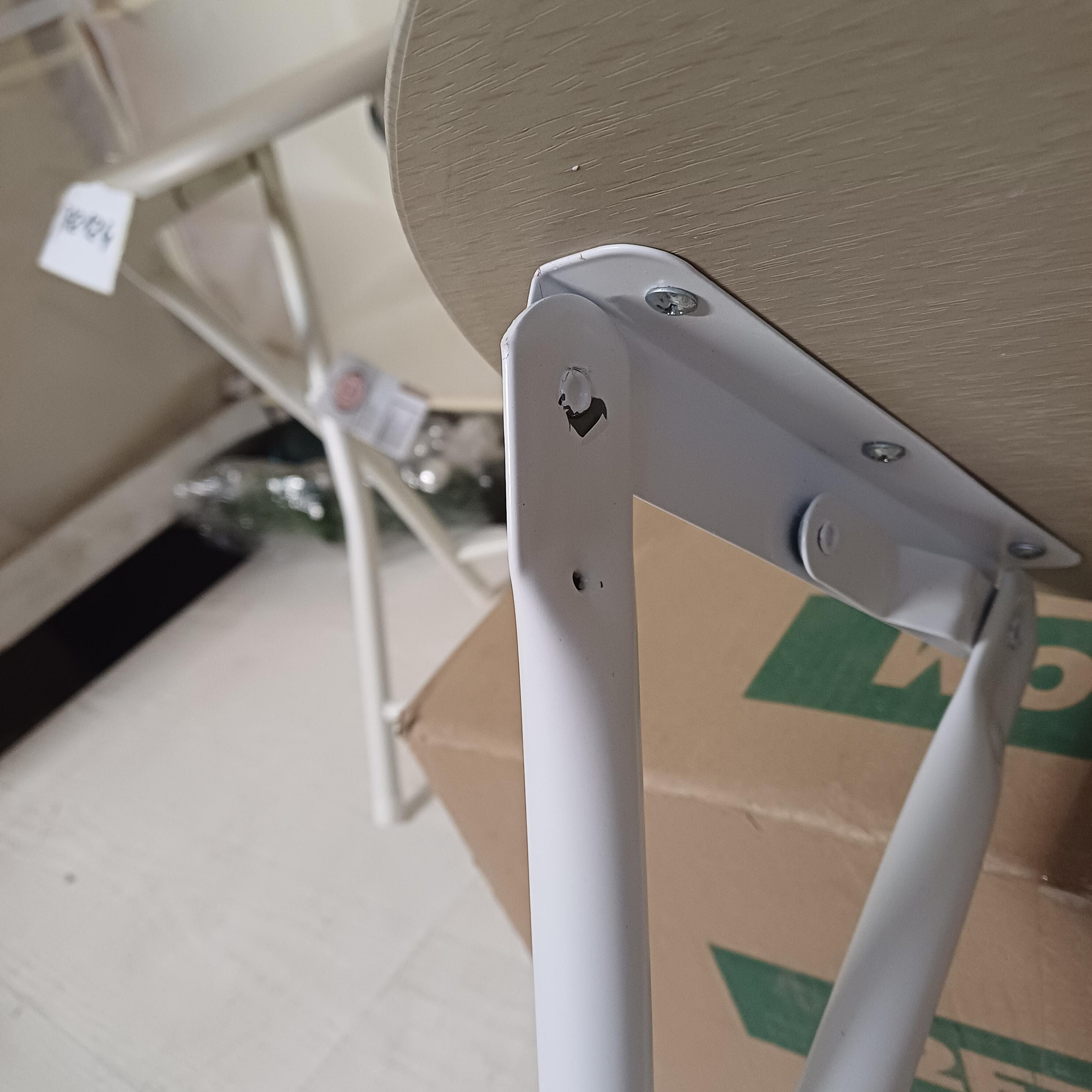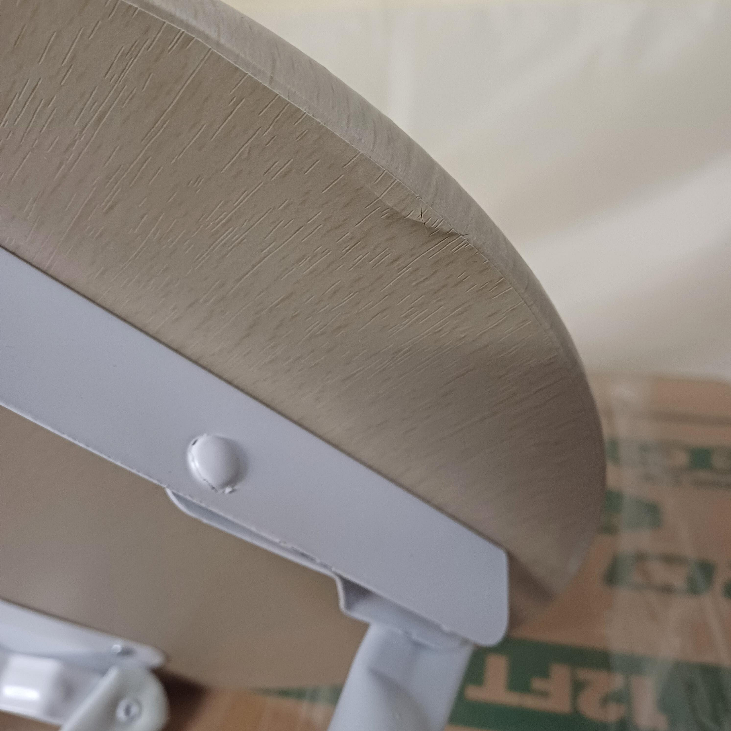 Proizvod je potpuno funkcionalan, površina stolice ima ogrebotine i na nekim mjestima se ljušti furnir.