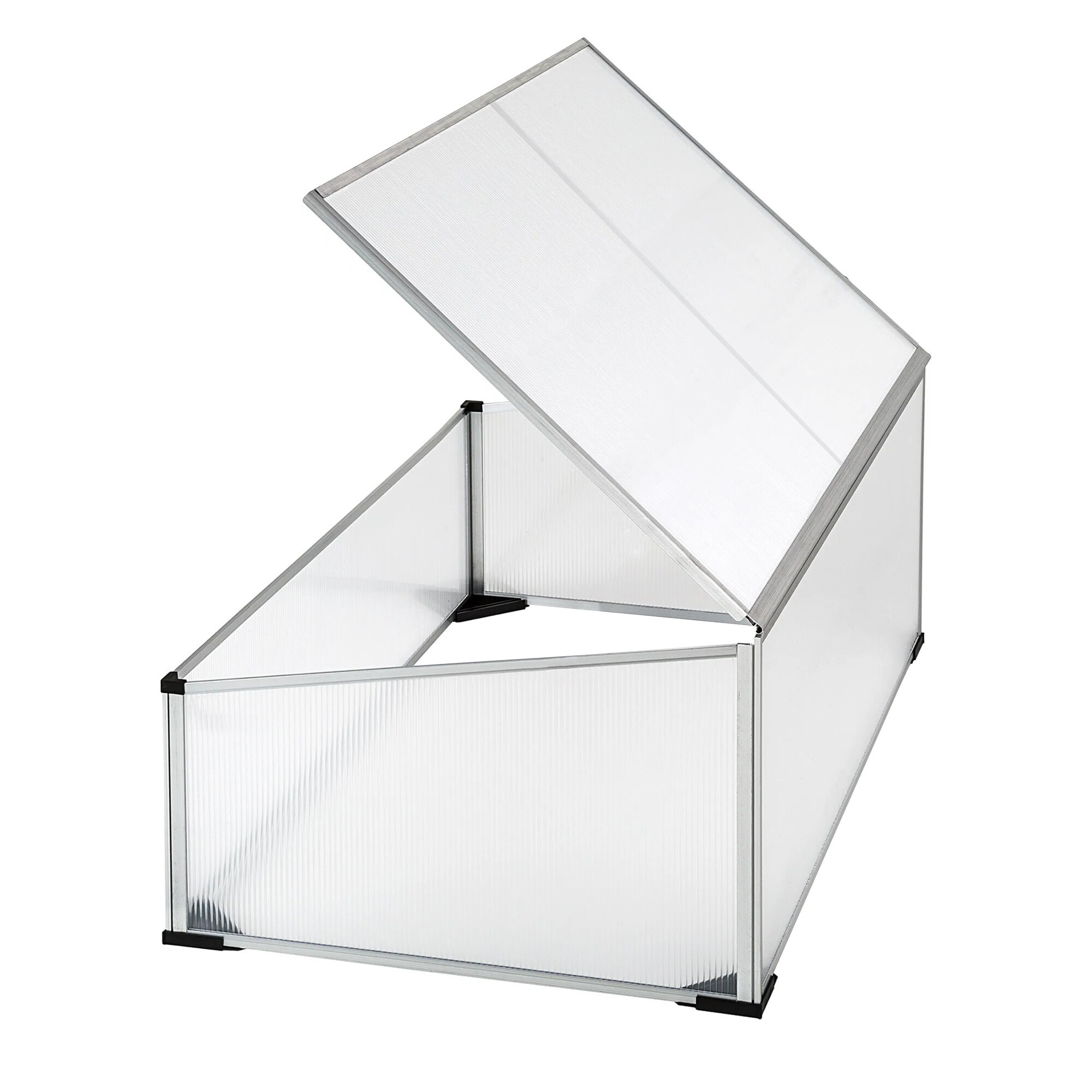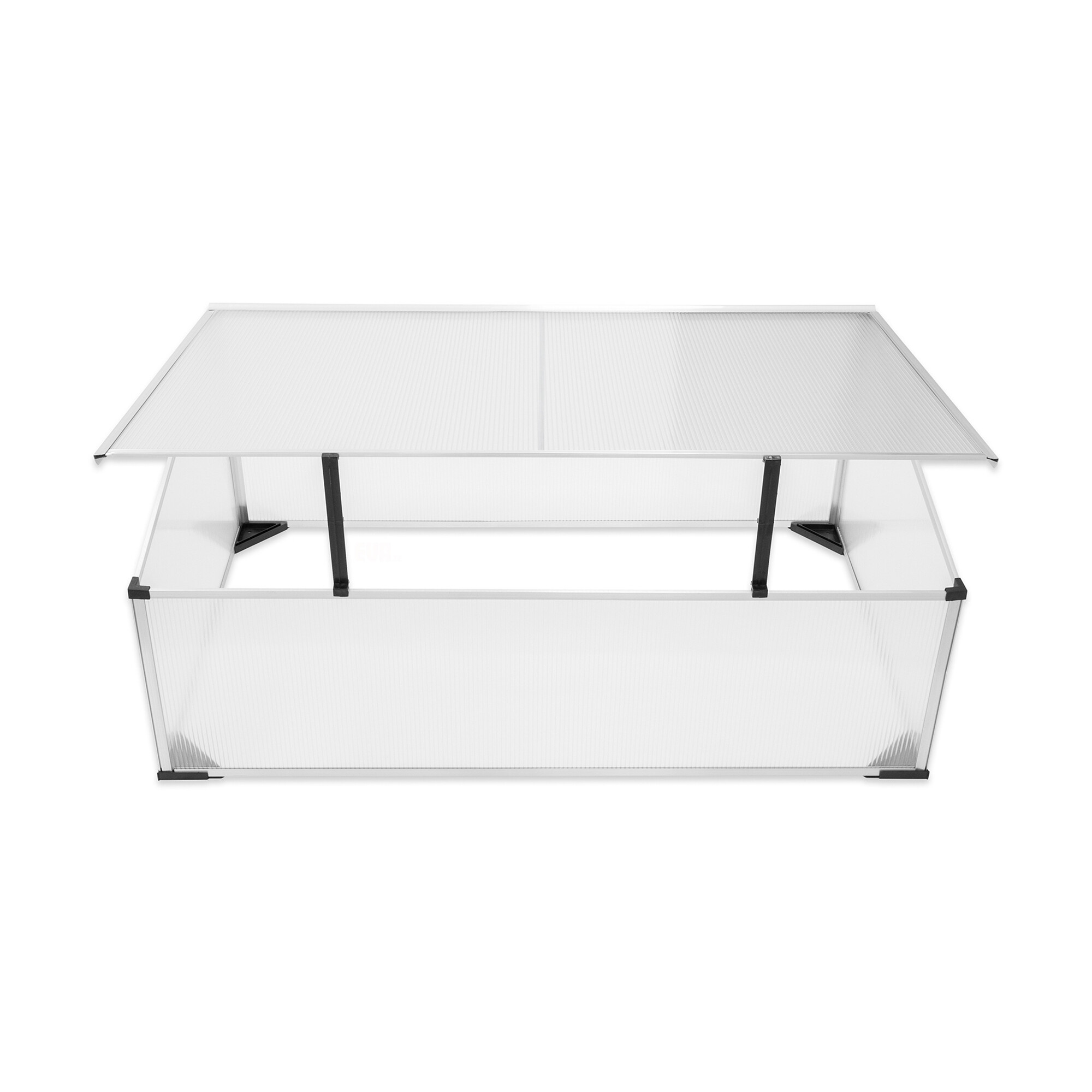 Vrtni staklenik s izvrsnim toplinsko izolacijskim svojstvima izrađen od aluminijskih profila s polikarbonatnim ispunom.Staklenik je opremljen poklopcem koji se može podići za jednostavan pristup i ventilaciju.