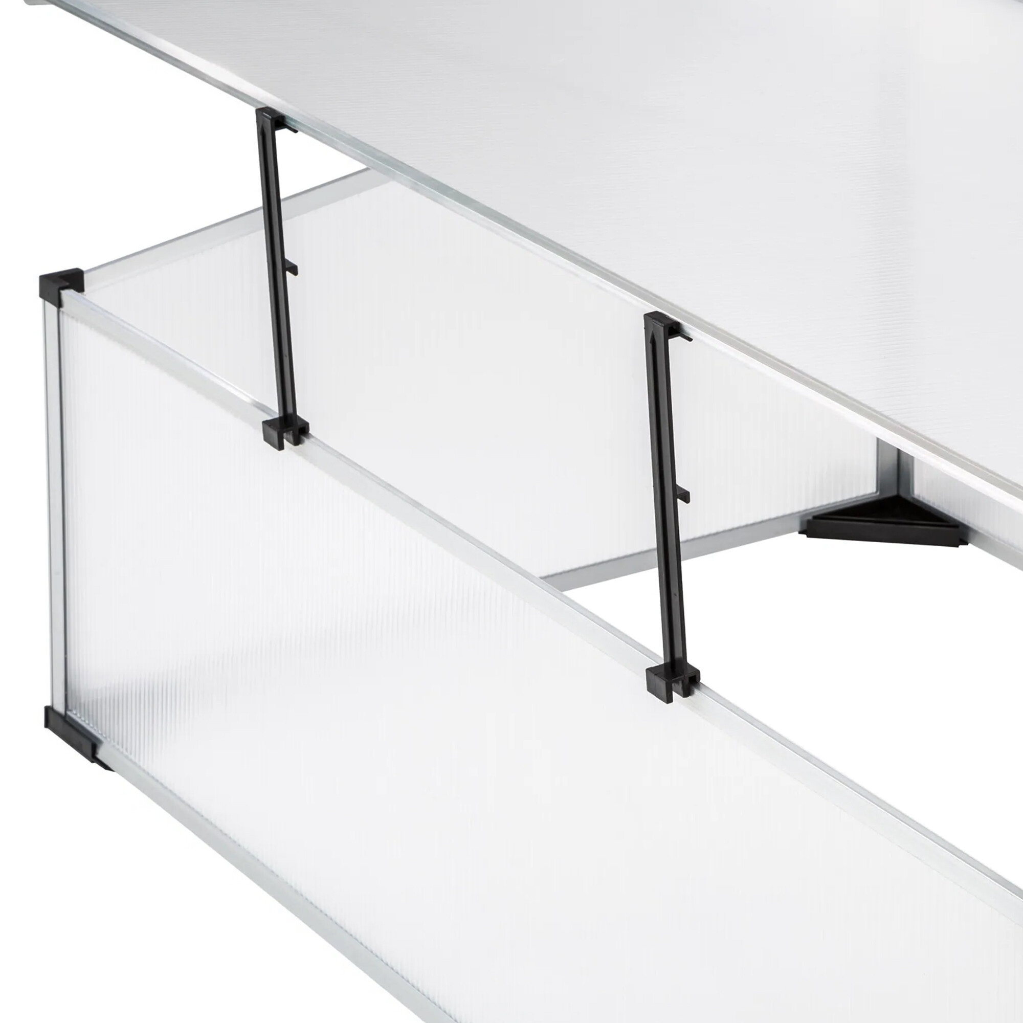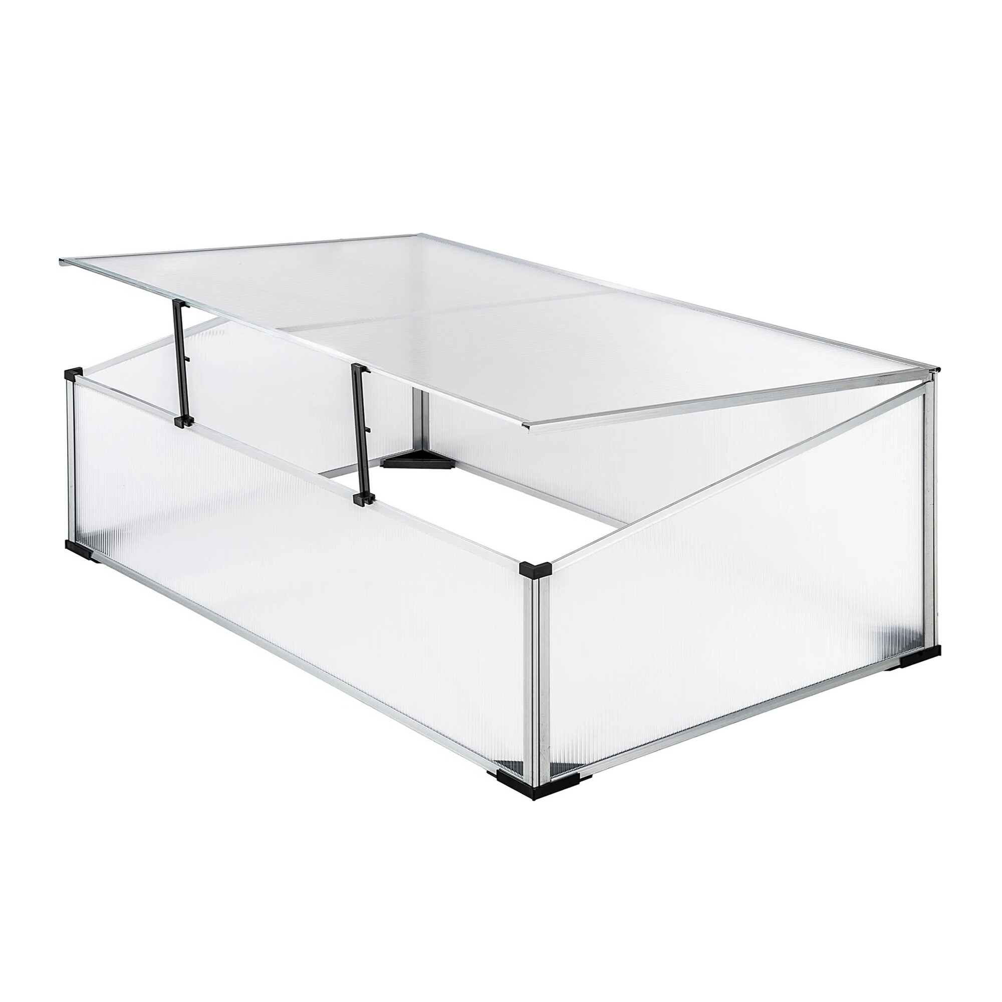 Vrtni staklenik s izvrsnim toplinsko izolacijskim svojstvima izrađen od aluminijskih profila s polikarbonatnim ispunom.Staklenik je opremljen poklopcem koji se može podići za jednostavan pristup i ventilaciju.